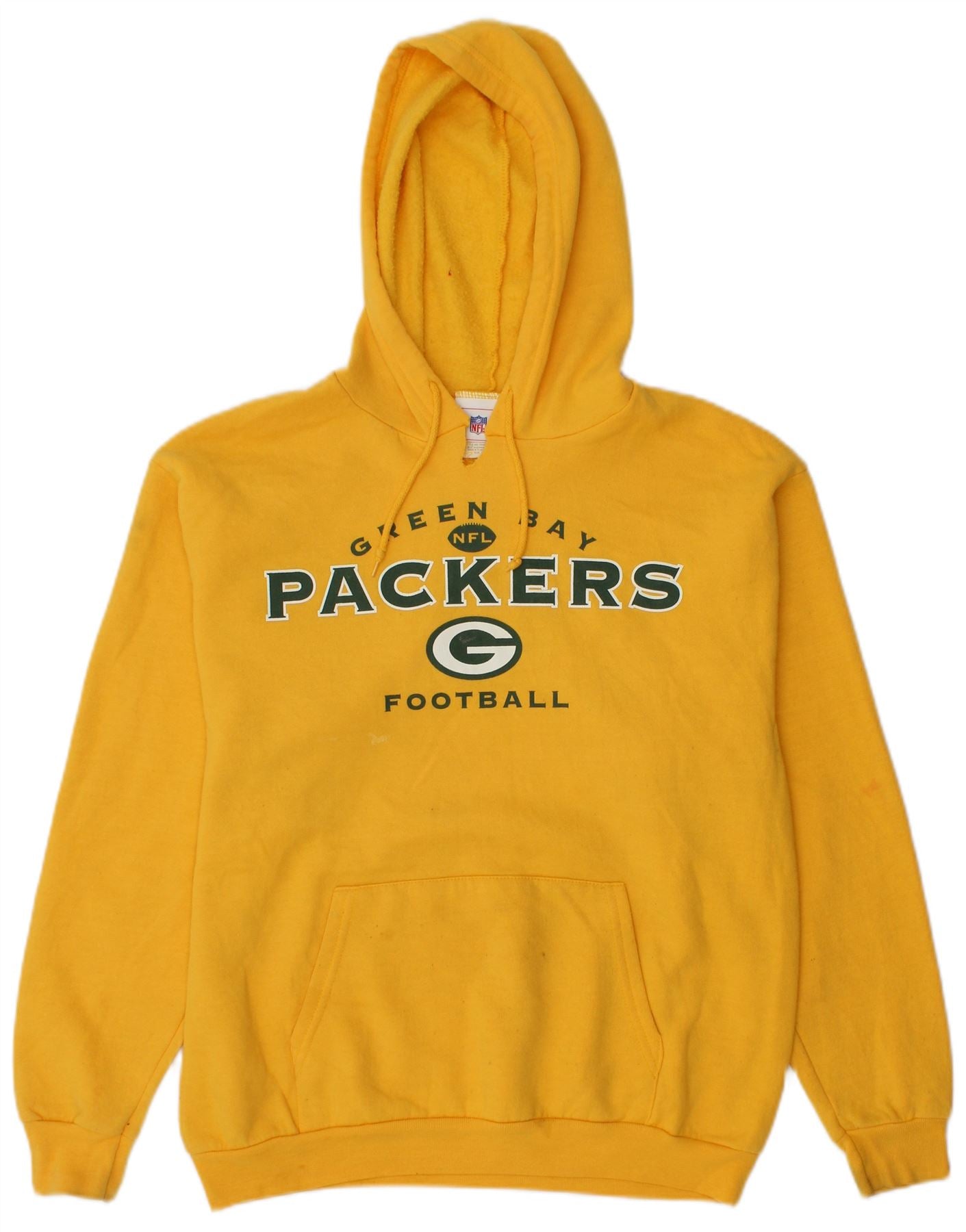 NFL Mens Green Bay Packers Graphic Hoodie Jumper Medium Yellow Cotton