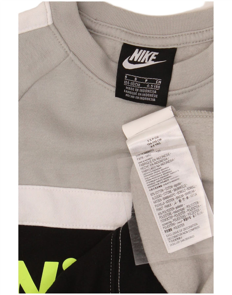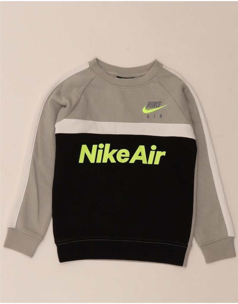 NIKE Boys Graphic Sweatshirt Jumper 4-5 Years Small Black Colourblock