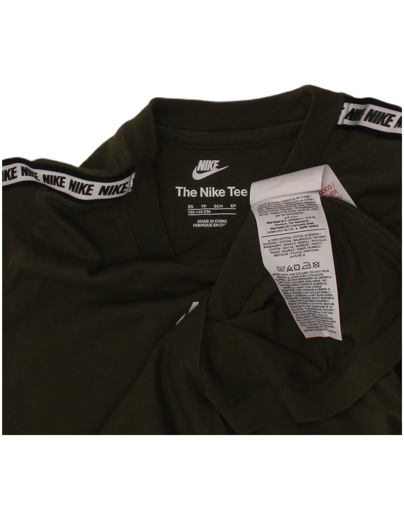 NIKE Boys Graphic T-Shirt Top 6-7 Years XS Khaki Colourblock Cotton
