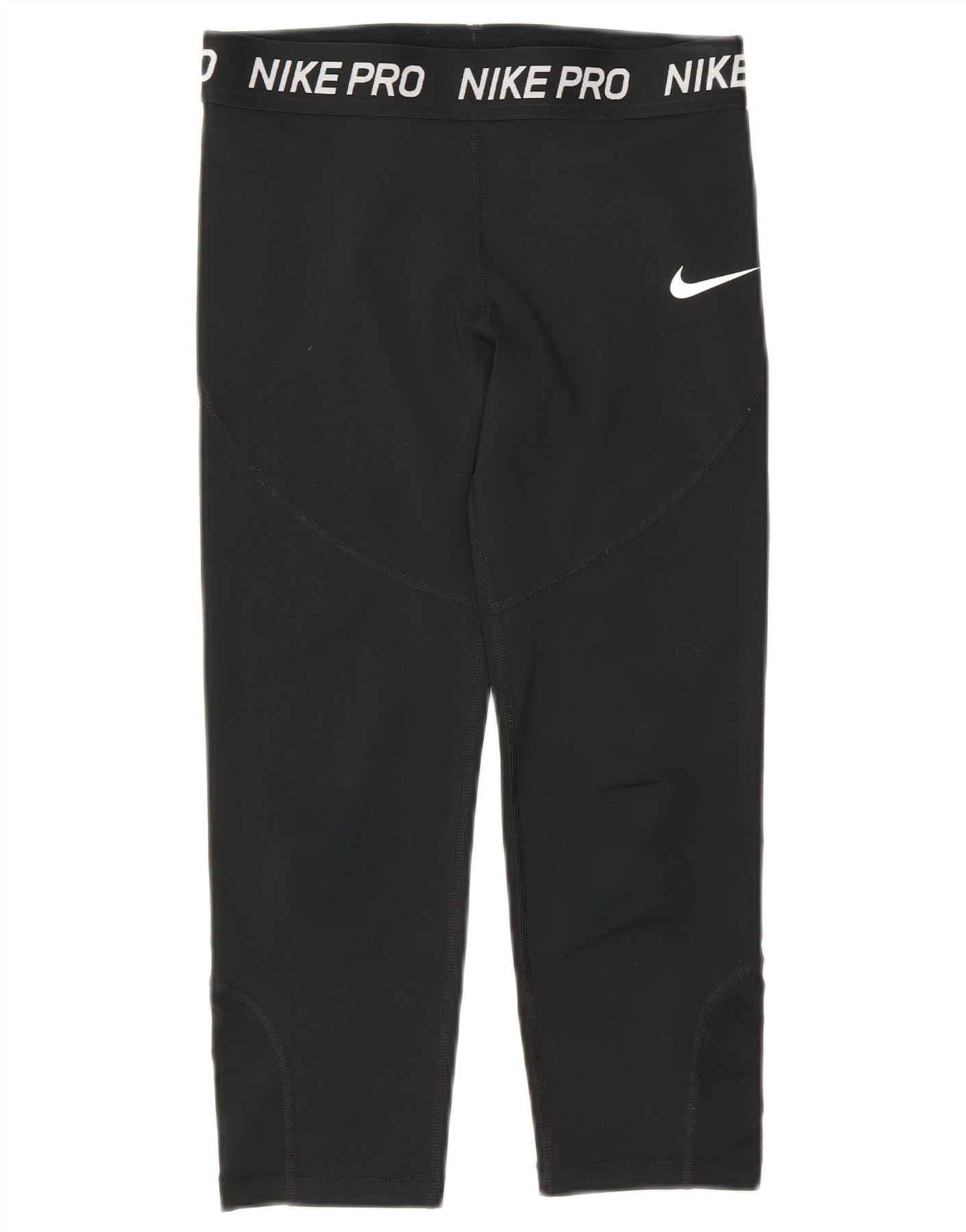 - Descriere AI: Acești colanți Nike pentru fete sunt confecționați dintr-o țesătură neagră respirabilă. Acestea au o potrivire capri subțire, concepute pentru mișcare activă. Stilul de tragere include o centură elastică în talie. Talia este marcată cu inscripții Nike Pro, iar un logo alb Nike swoosh accentuează piciorul. Acest design oferă atât confort, cât și stil atletic, perfect pentru activități sportive.
