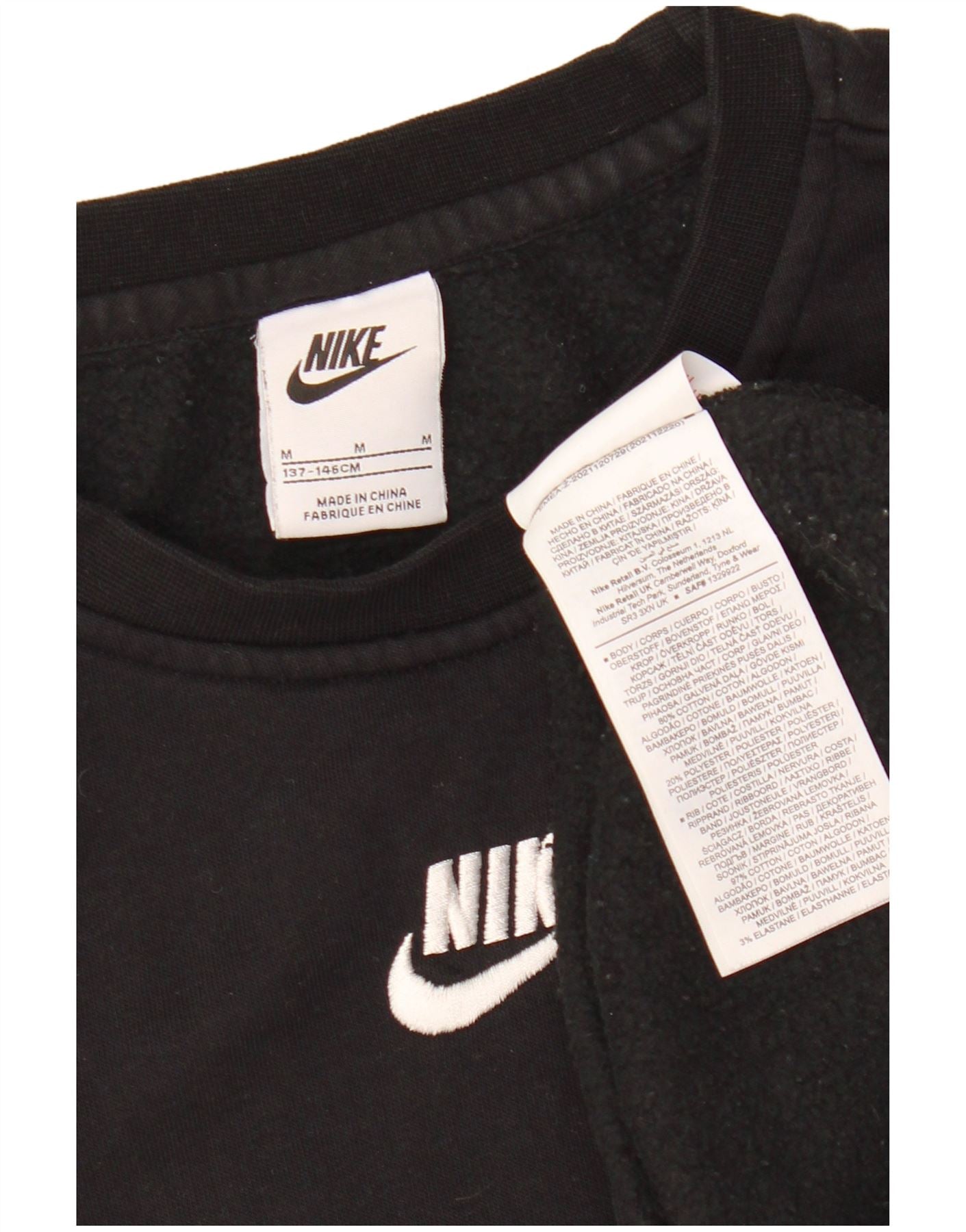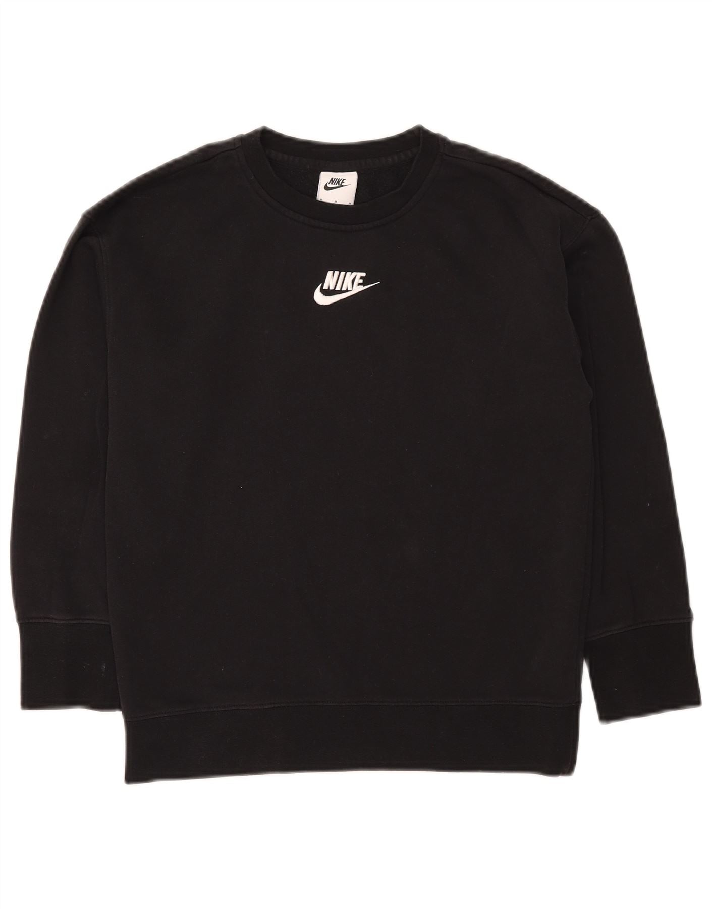 NIKE Girls Graphic Sweatshirt Jumper 10-11 Years Medium Black Cotton