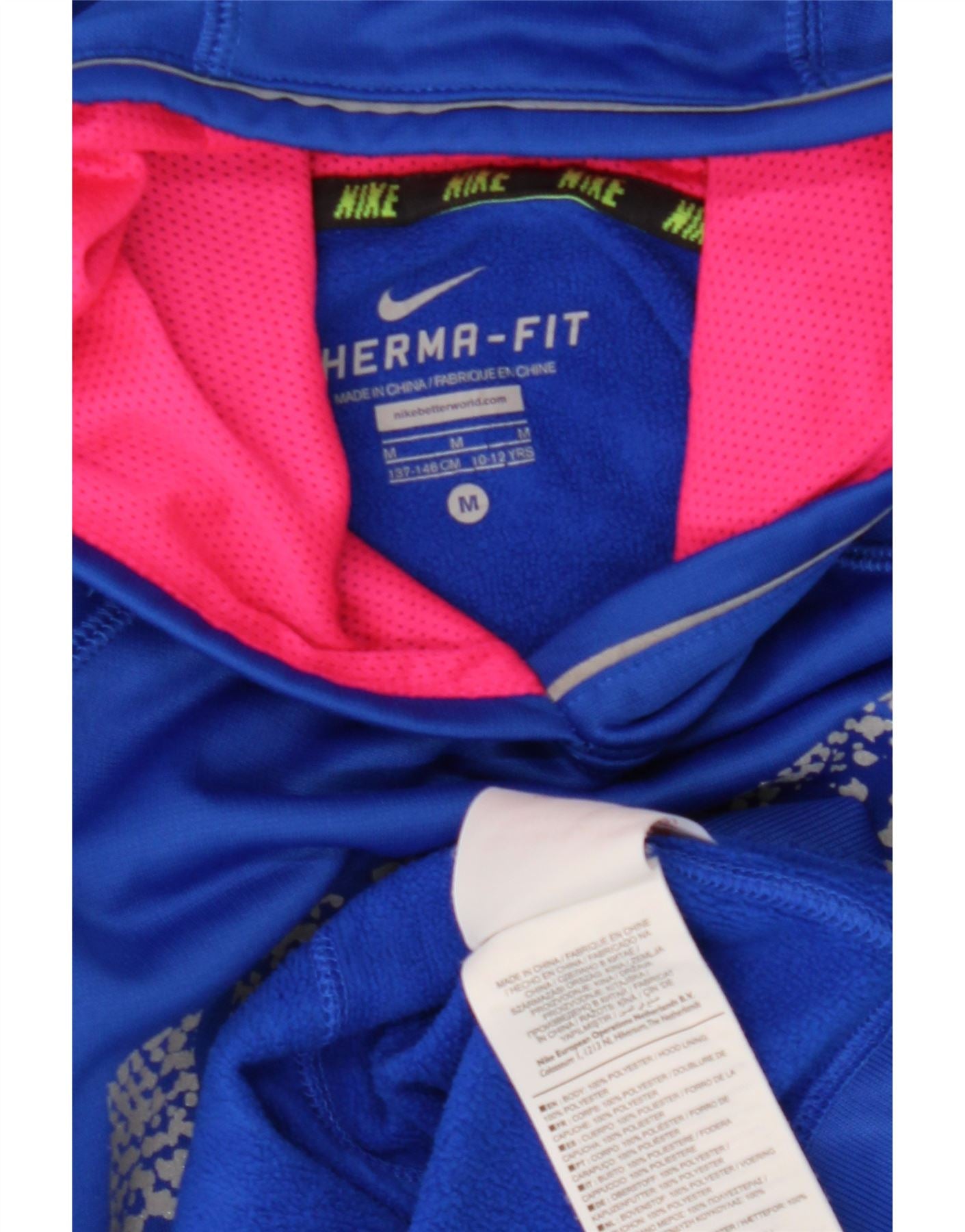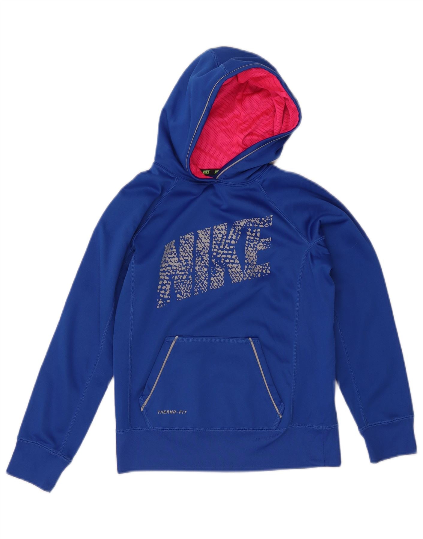 NIKE Girls Therma-Fit Graphic Hoodie Jumper 10-11 Years Medium Blue