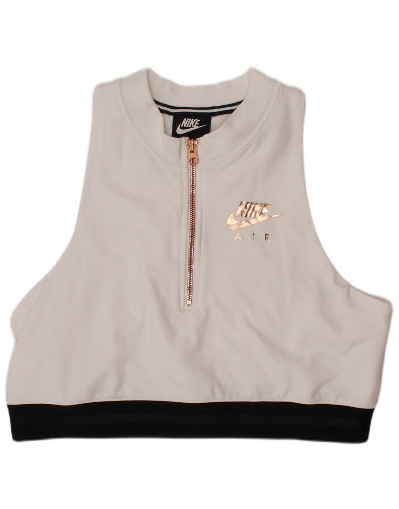 Sutien sport cu fermoar pentru fete NIKE Top 12-13 ani, mare, alb, bloc de culoare