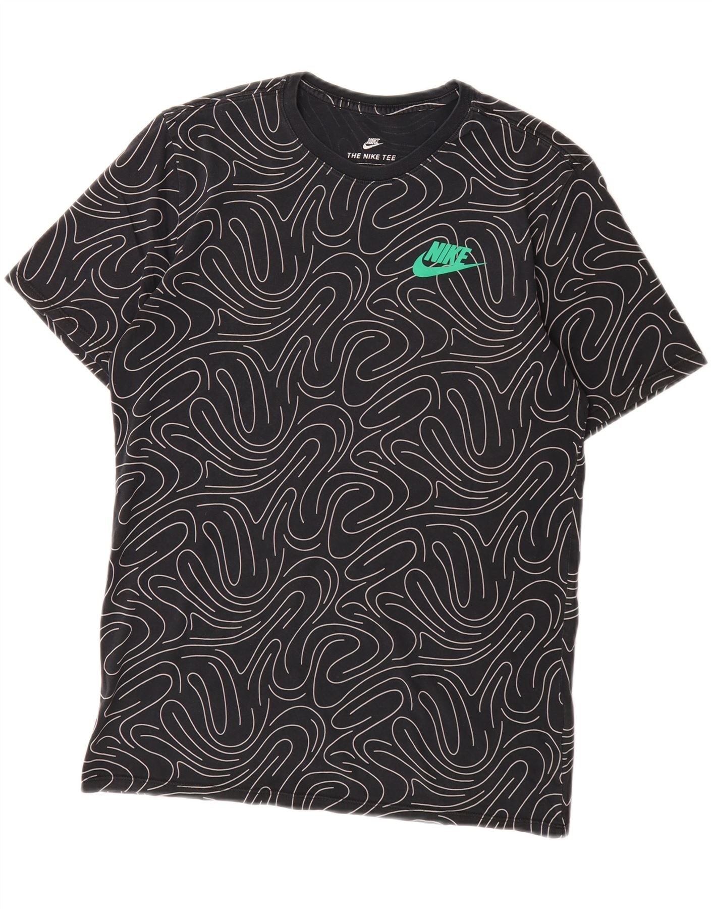NIKE Mens Abstract Pattern T-Shirt Top Medium Black Cotton