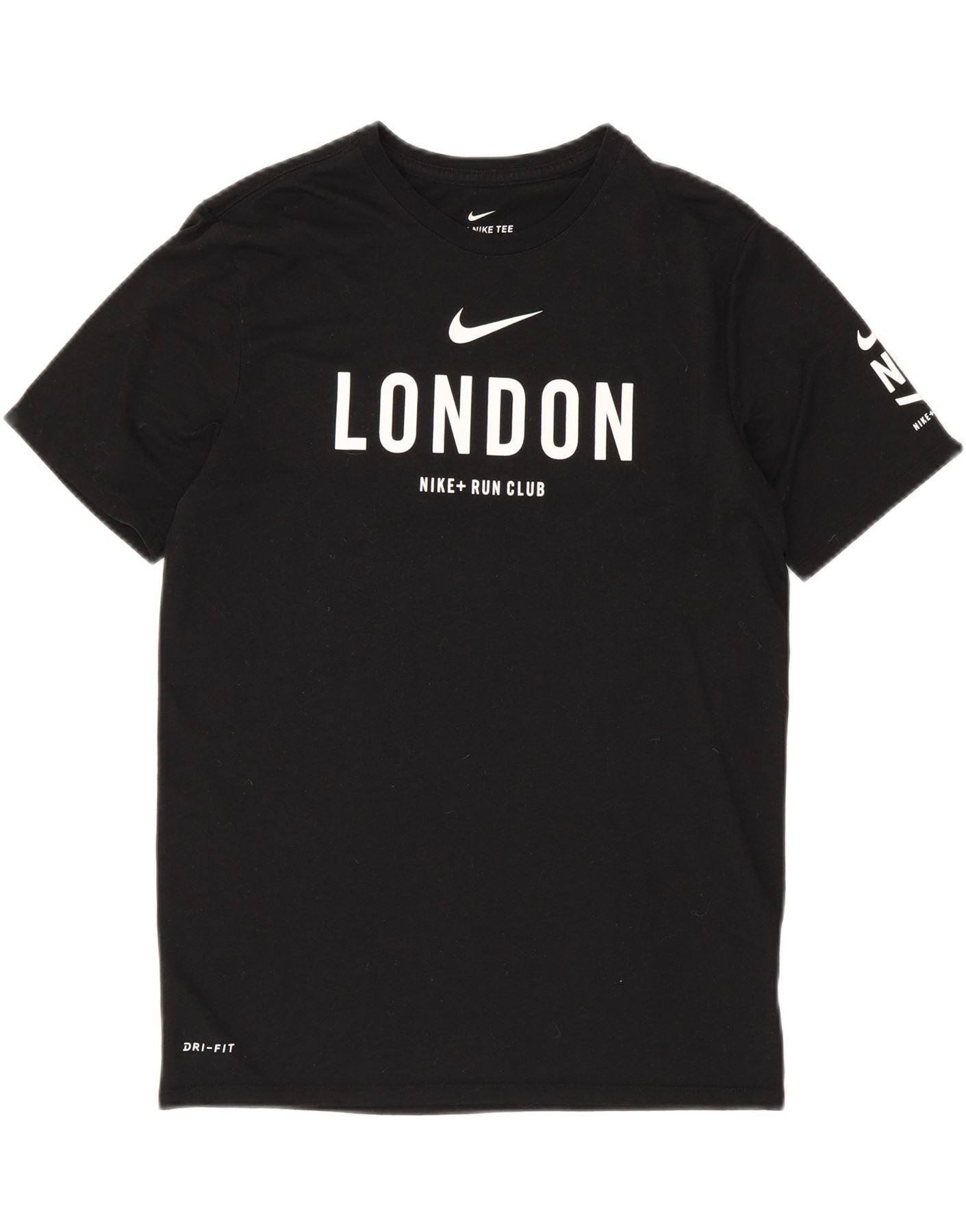 Tricou grafic NIKE pentru bărbați, cu croială atletică, poliester mediu negru