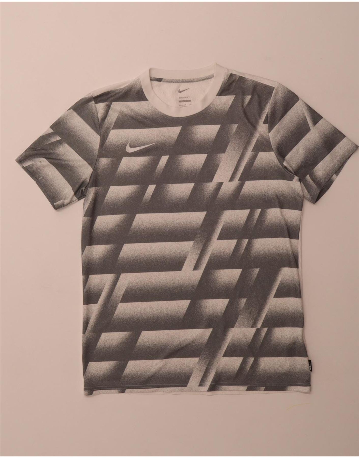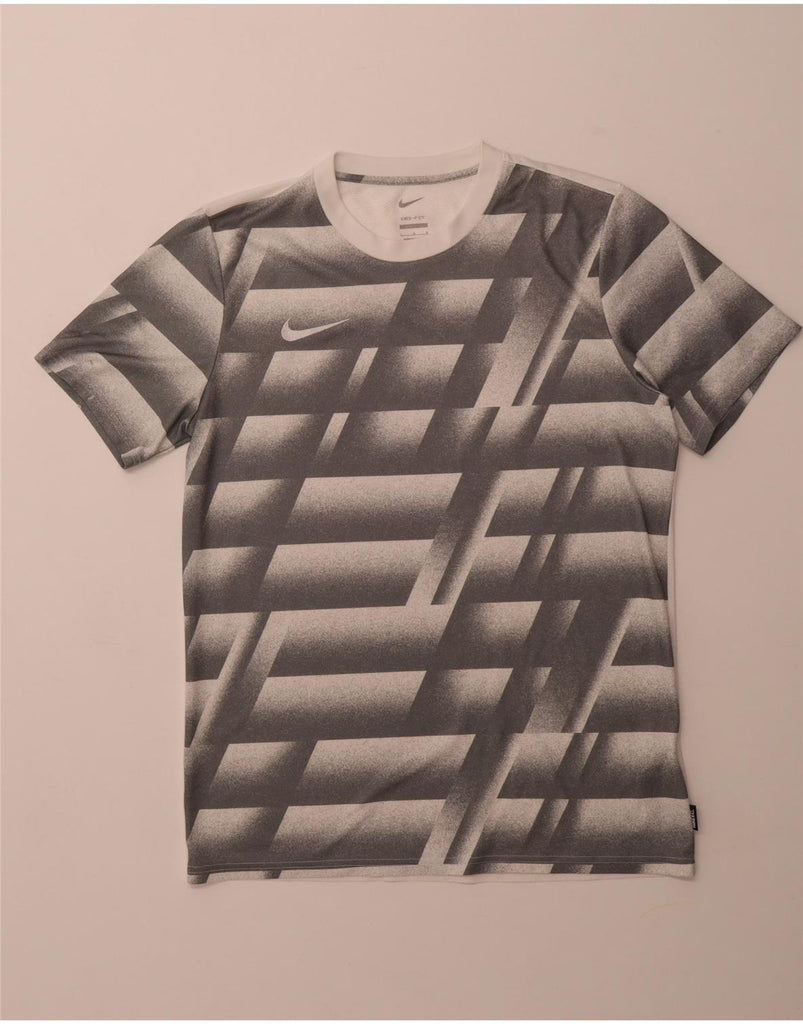 NIKE Mens Dri Fit Graphic T-Shirt Top Large Grey Geometric Polyester
