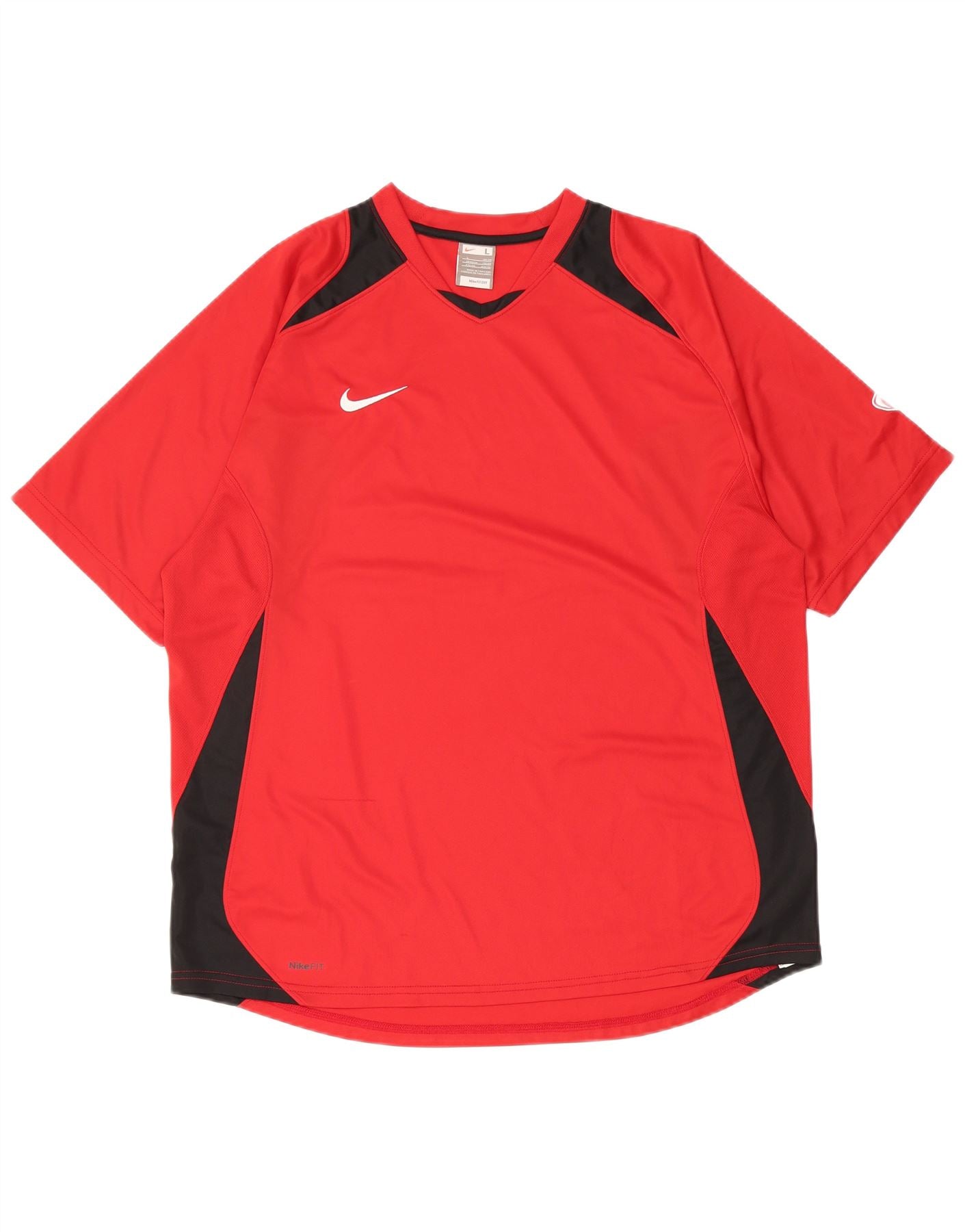 NIKE Mens Dri Fit T-Shirt Top UK 42/44 Large Red Colourblock Polyester