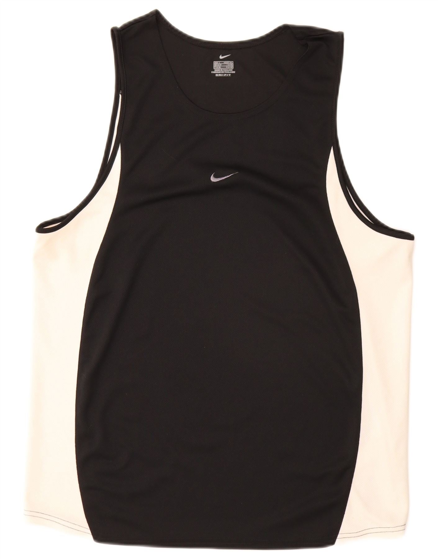 NIKE Mens Dri Fit Vest Top UK 42/44 Large Black Colourblock Polyester