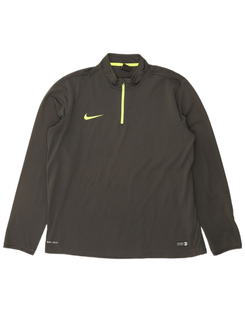 NIKE Mens Dri Fit Zip Neck Pullover Tracksuit Top XL Grey Polyester
