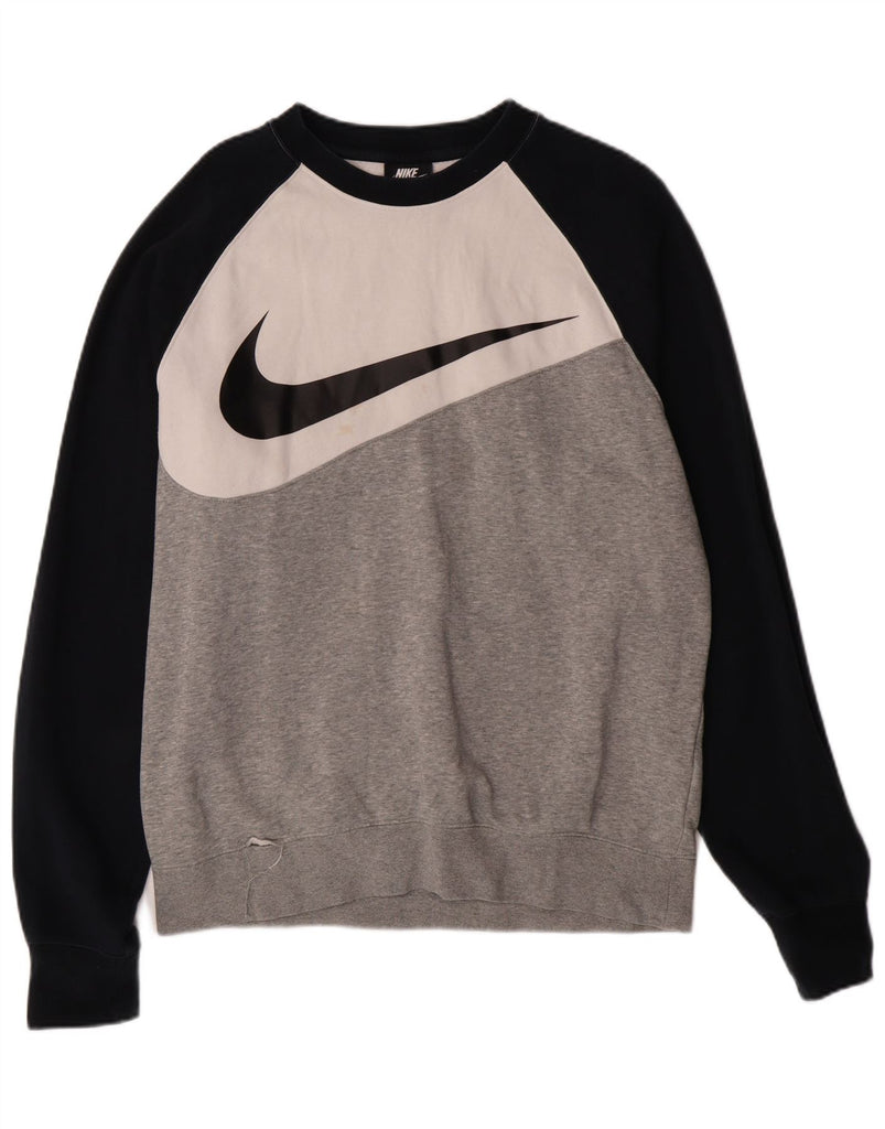 NIKE Mens Graphic Sweatshirt Jumper Medium Grey Colourblock Cotton