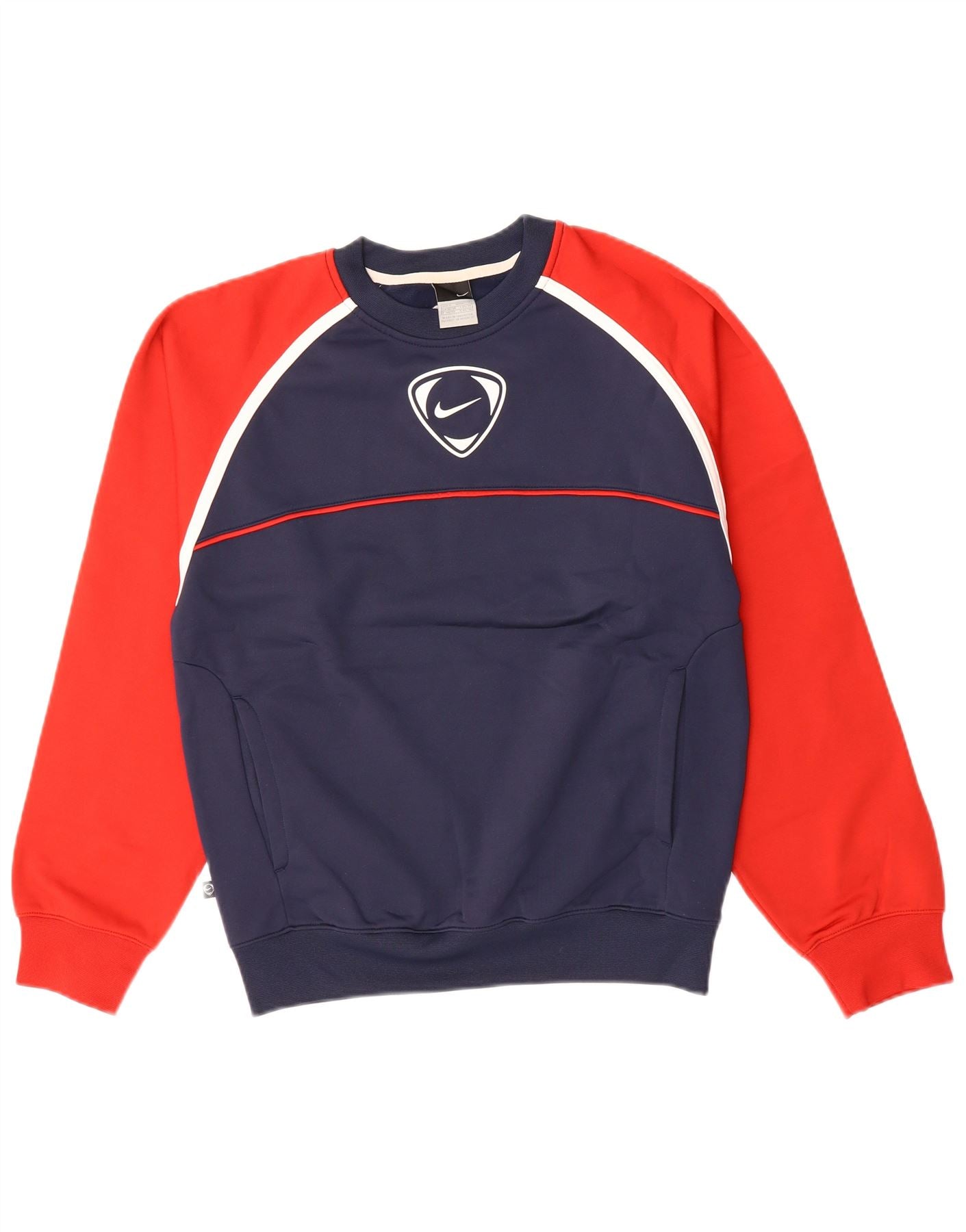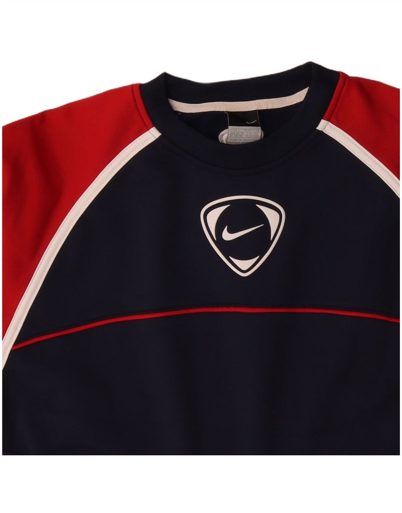 NIKE Mens Graphic Sweatshirt Jumper Small Navy Blue Colourblock Cotton