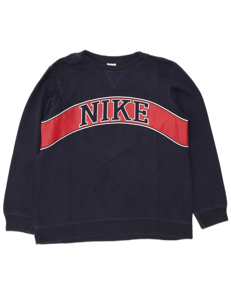 NIKE Mens Graphic Sweatshirt Jumper UK 39/41 Medium Navy Blue Cotton