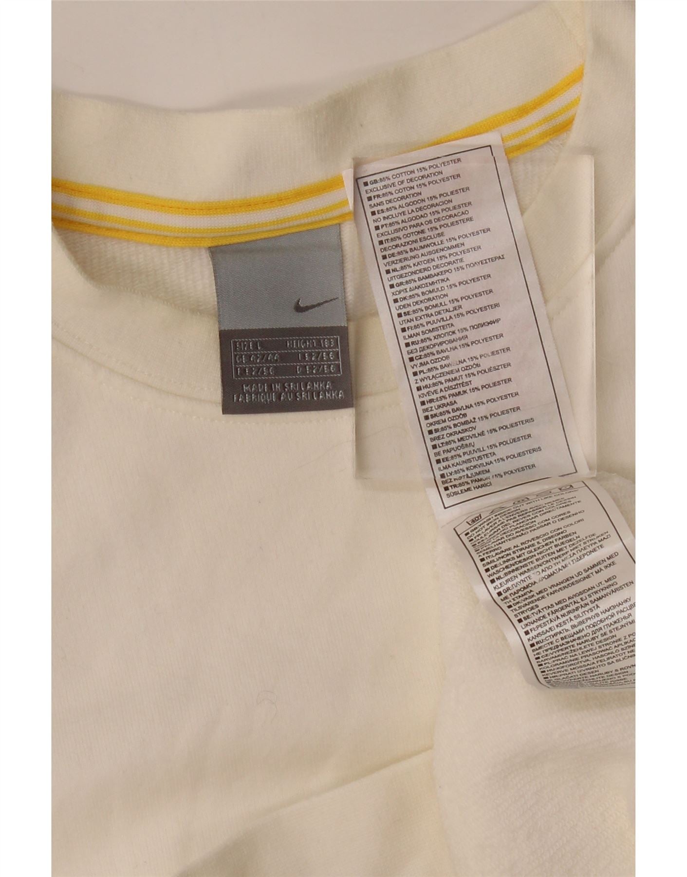 - AI Description: This Nike boys' crew neck jumper sweater is crafted from a soft cotton blend, offering both comfort and stretch. Its off white blended fabric has a smooth, jersey-like texture. The classic round neckline and long sleeves provide a timeless silhouette. A prominent graphic logo detail adorns the front, adding a sporty touch. This pullover design ensures a regular fit for everyday wear.
