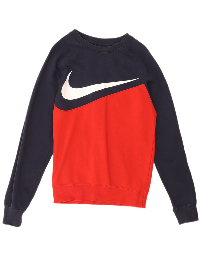 NIKE Mens Graphic Sweatshirt Jumper XS Navy Blue Colourblock Cotton