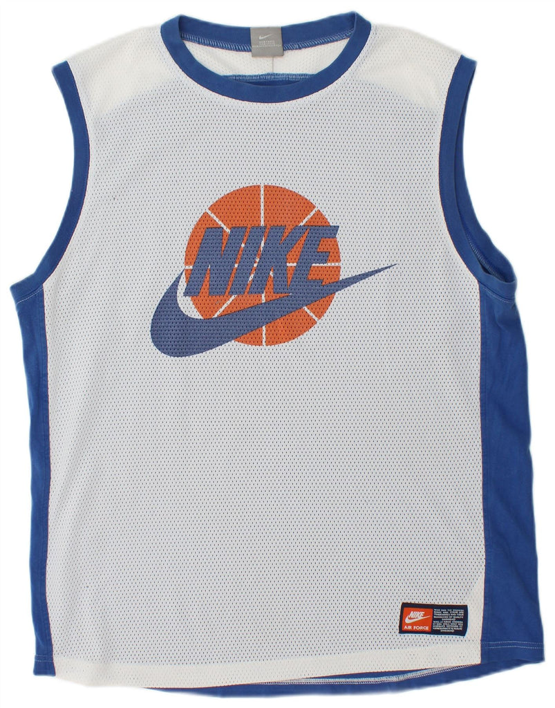 NIKE Mens Graphic Vest Top UK 39/41 Medium Blue Colourblock Cotton