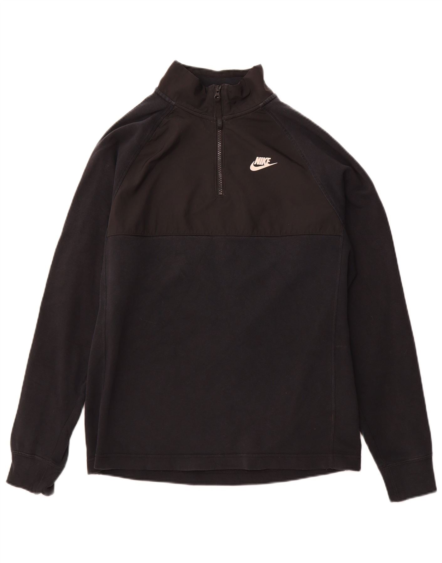 Pulover NIKE pentru bărbați, cu grafic, cu fermoar și gât, bumbac mic, negru