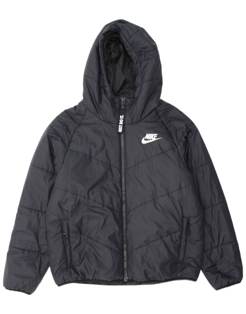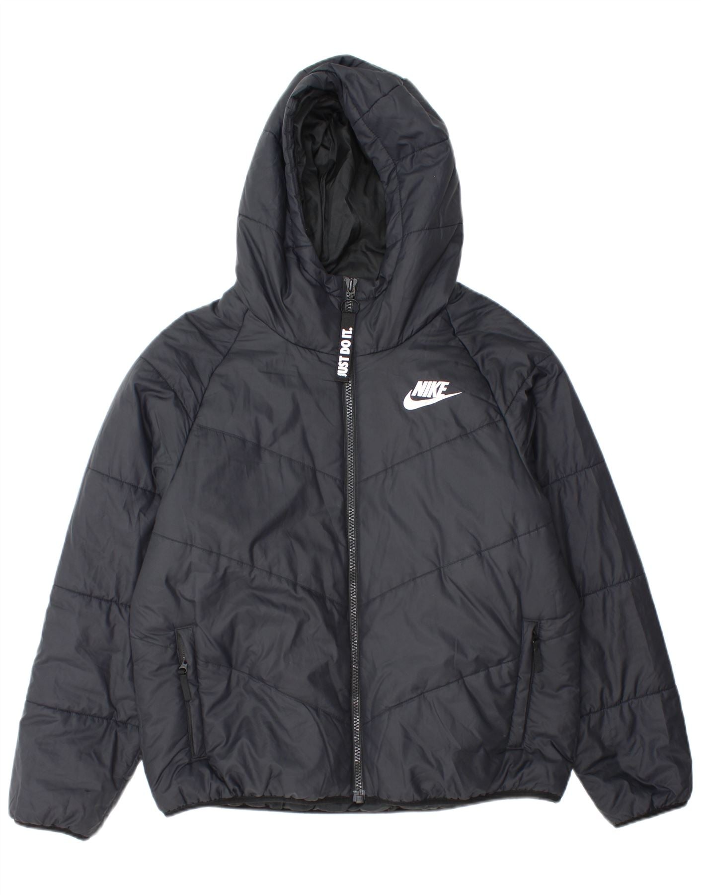 NIKE Mens Hooded Padded Jacket UK 40 Large Black Polyester