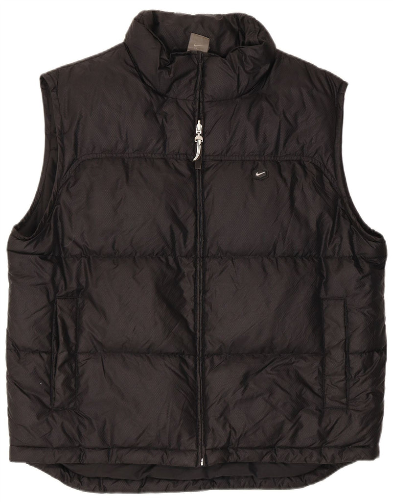 - AI Description: This Nike womens padded gilet offers lightweight warmth in a sleek black woven fabric. Its padded construction provides comfort without bulk. The collared neckline and full zip closure ensure a secure fit. A sleeveless design allows for unrestricted movement. The regular fit and subtle logo accent complete this versatile sports piece.