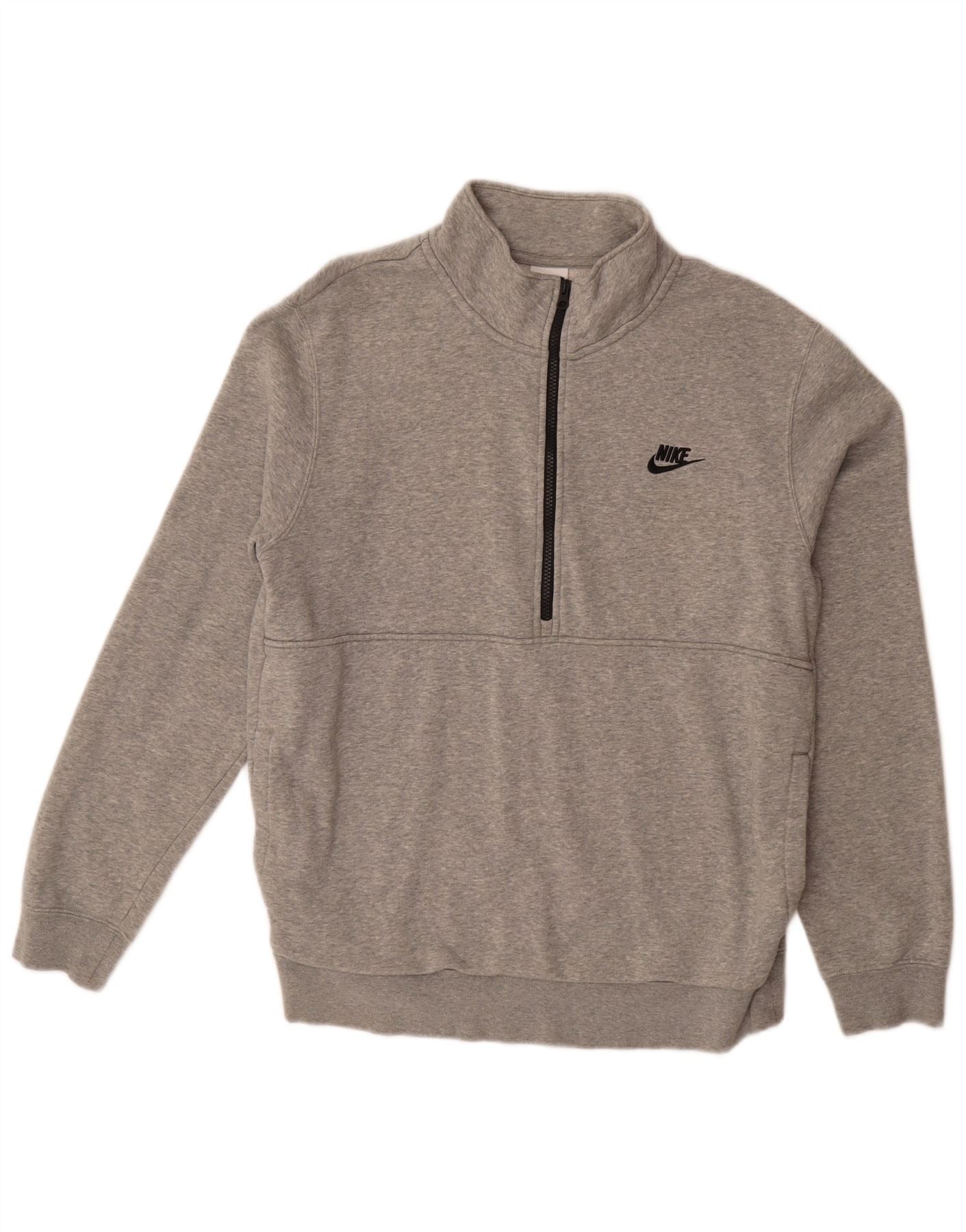 Pulover NIKE pentru bărbați, cu fermoar, cu gât, bumbac mare, gri