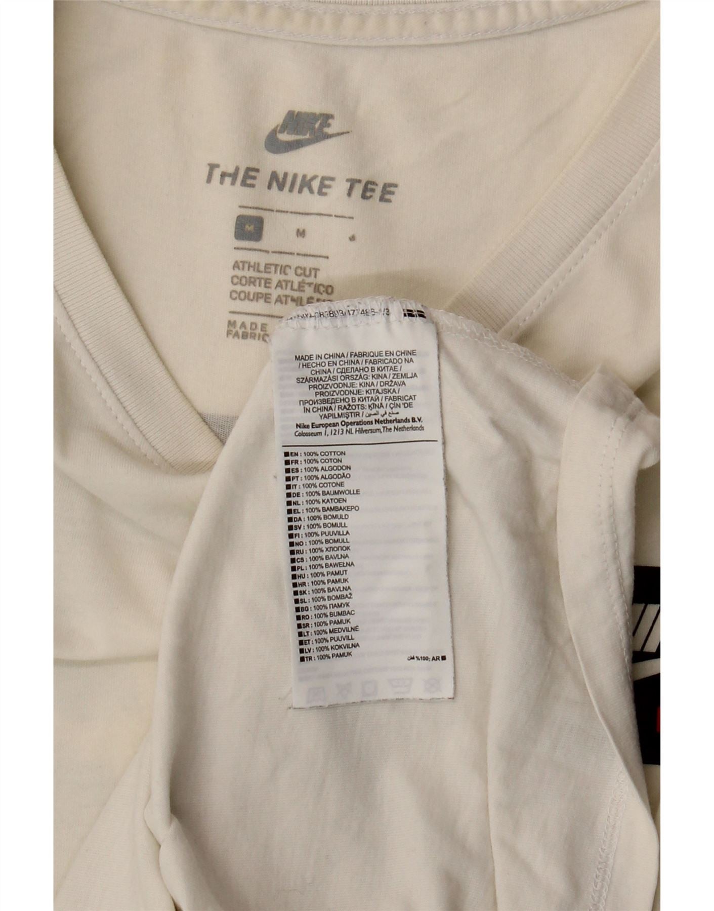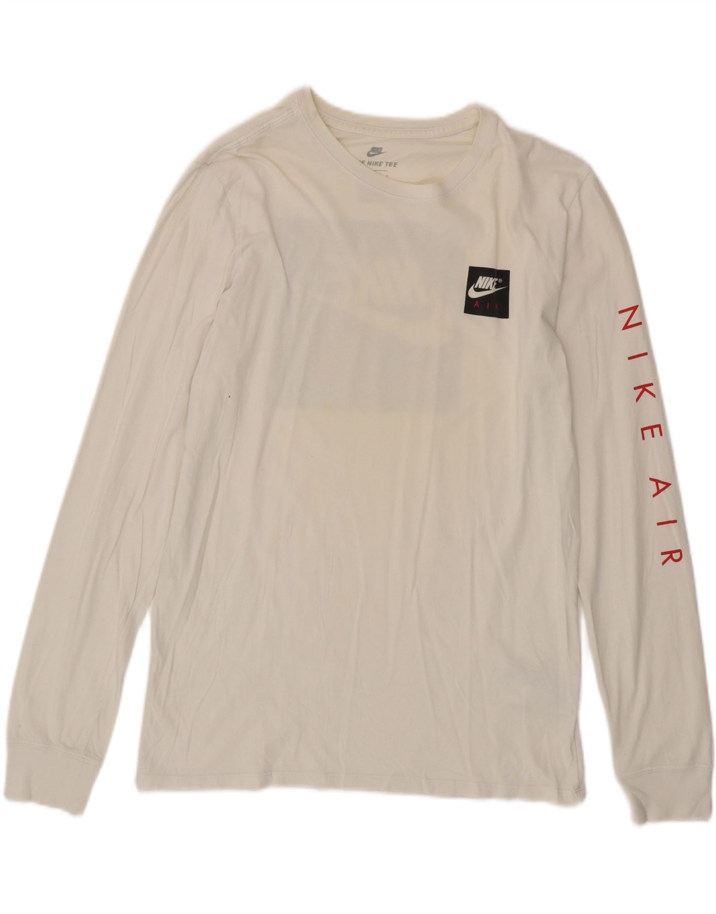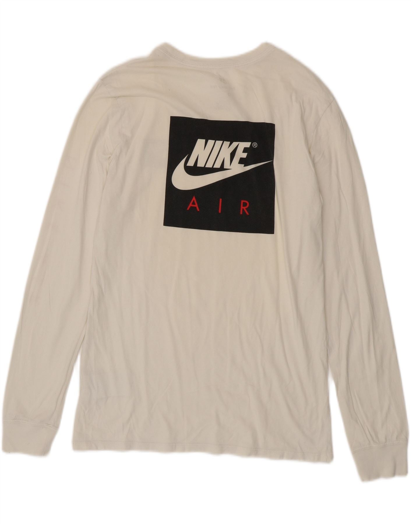 NIKE Womens Athletic Cut Graphic Top Long Sleeve UK 12 Medium White Cotton