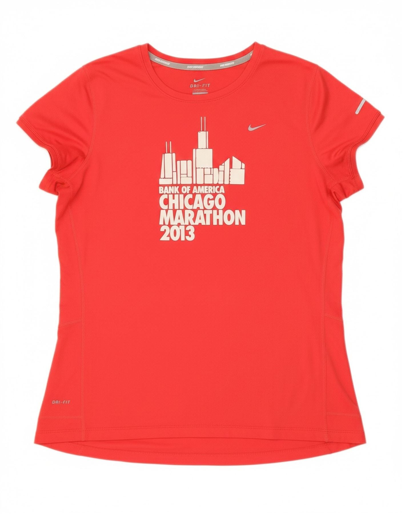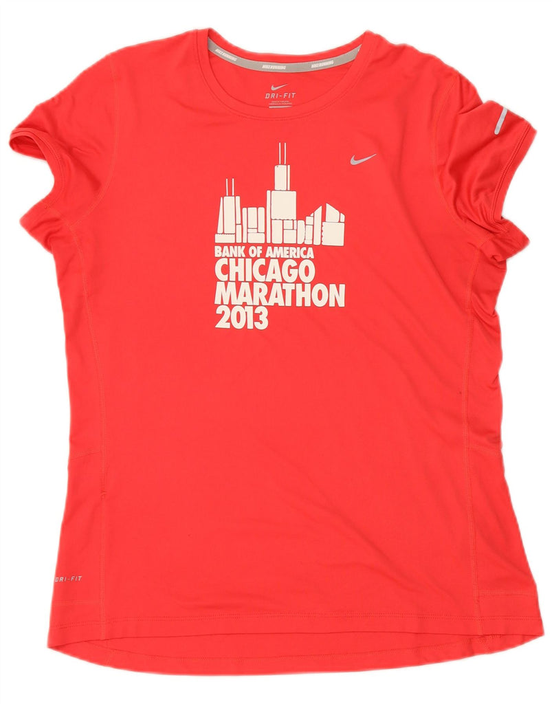 NIKE Womens Chicago Marathon Graphic T-Shirt Top UK 18 XL Red Polyester