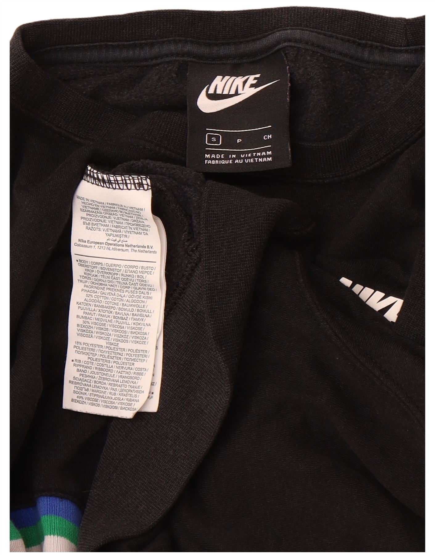 NIKE Womens Crop Oversized Sweatshirt Jumper UK 10 Small Black Striped