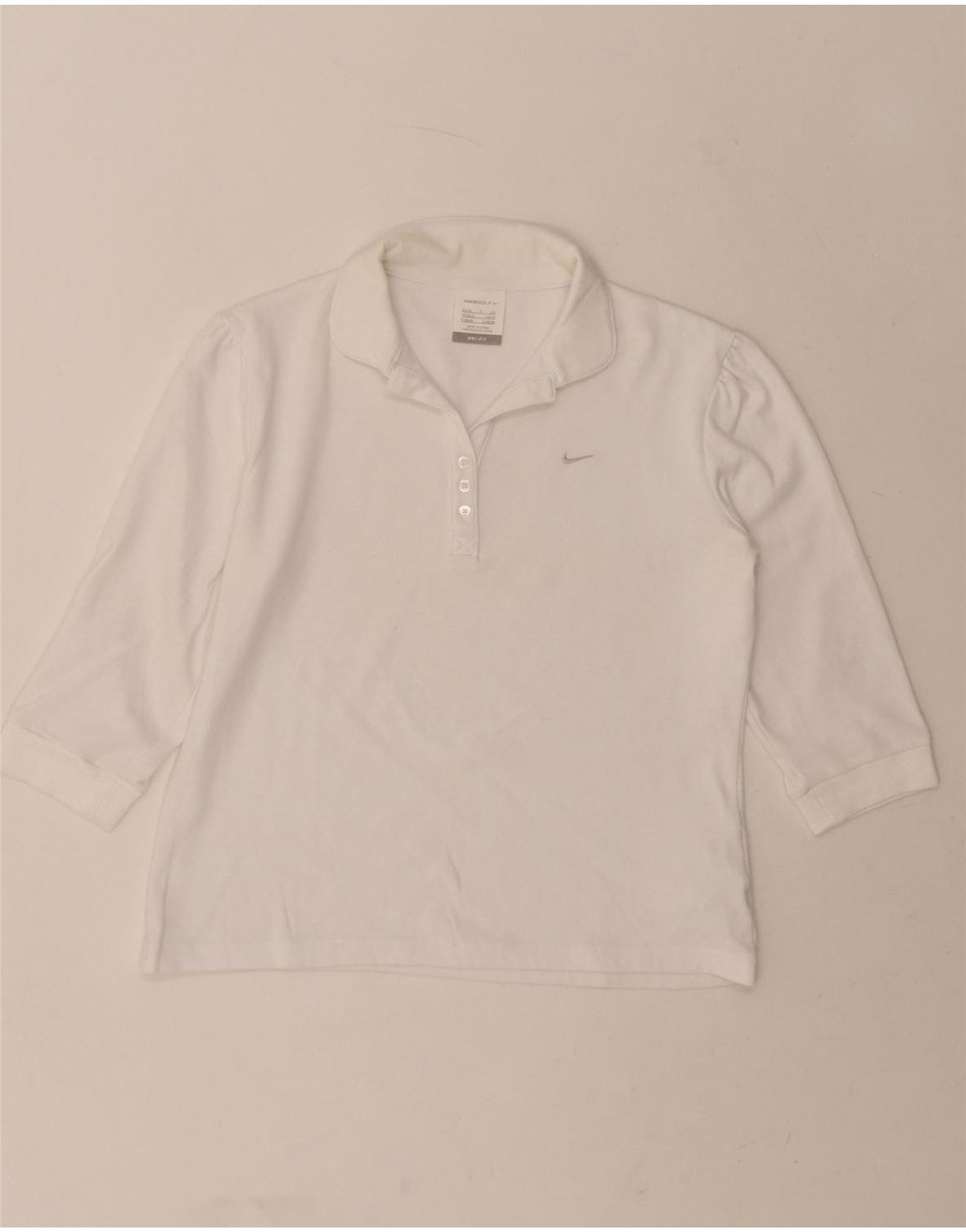 NIKE Womens Dri Fit 3/4 Sleeve Polo Shirt UK 8/10 Small White Cotton