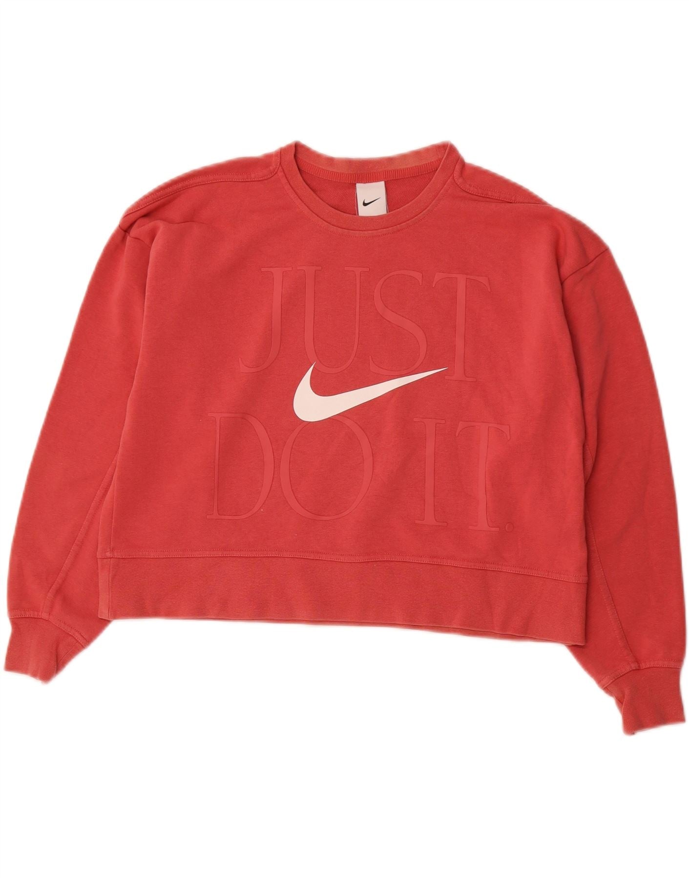 NIKE Womens Dri Fit Oversized Crop Sweatshirt Jumper UK 10 Small Pink