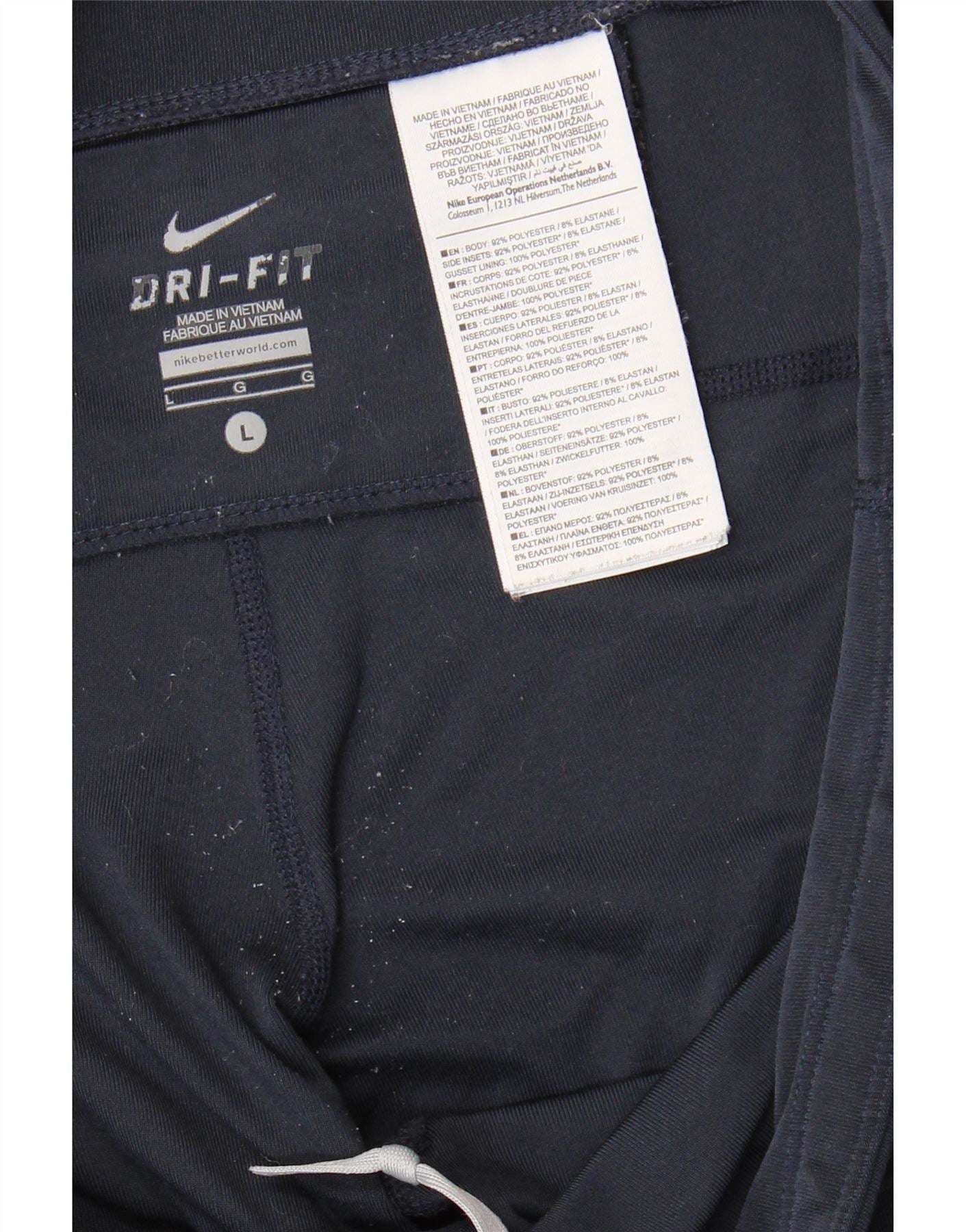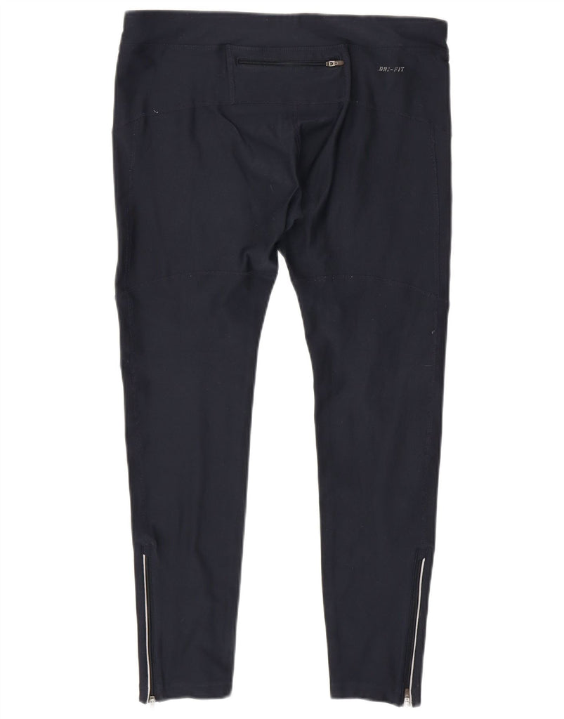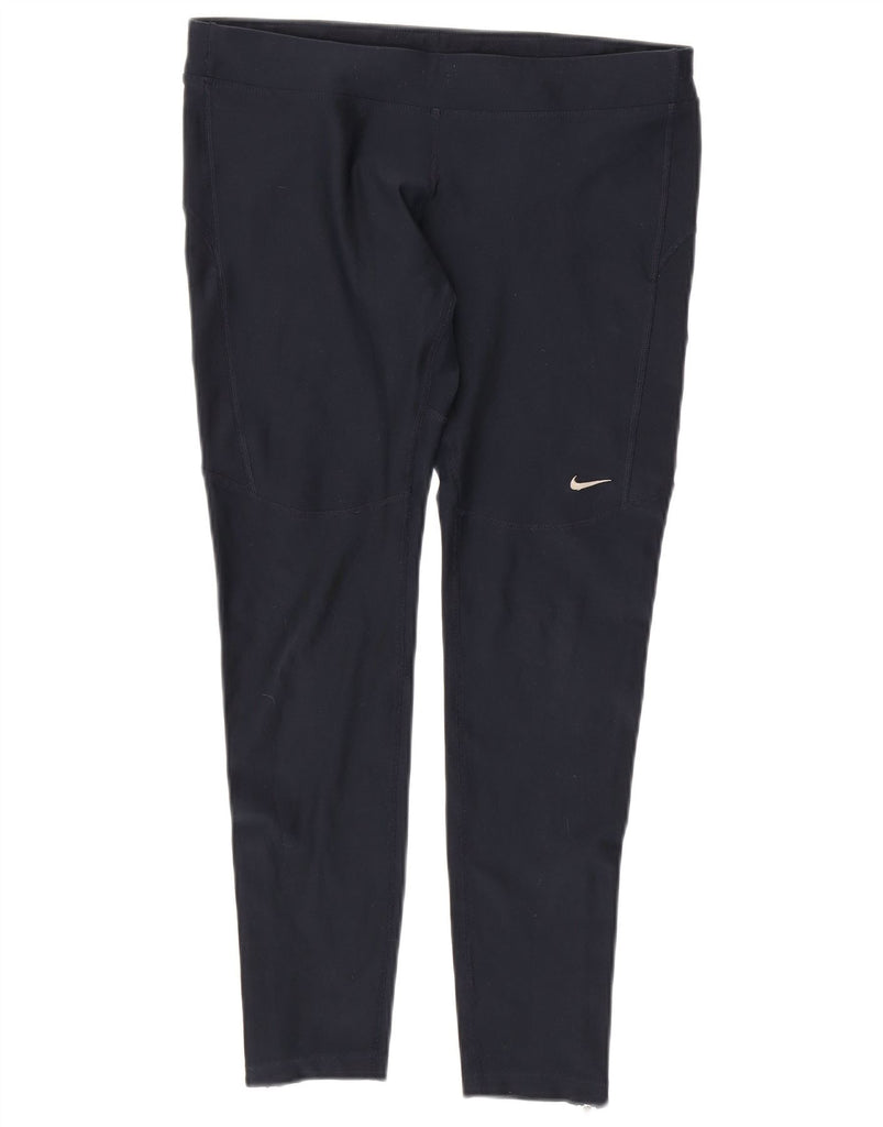 NIKE Womens Dri Fit Tracksuit Trousers UK 16 Large Navy Blue Cotton