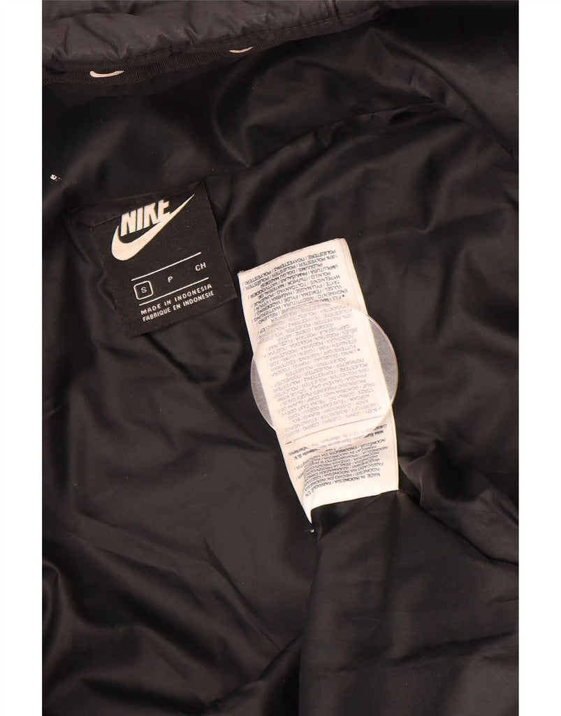 NIKE Womens Graphic Hooded Padded Jacket UK 10 Small Black Polyester