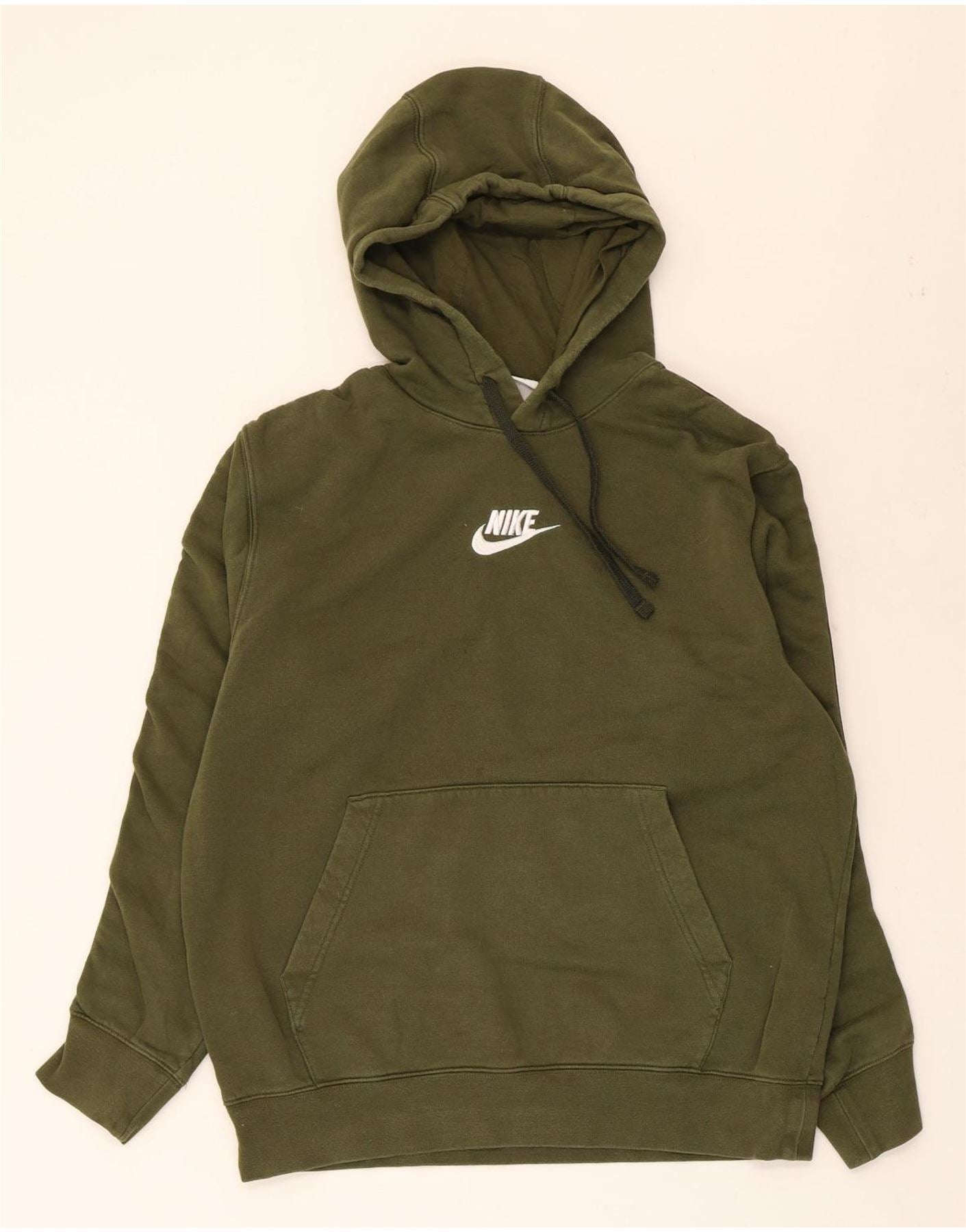 Pulover NIKE pentru damă, cu glugă grafică, UK 14, mediu kaki, bumbac color bloc