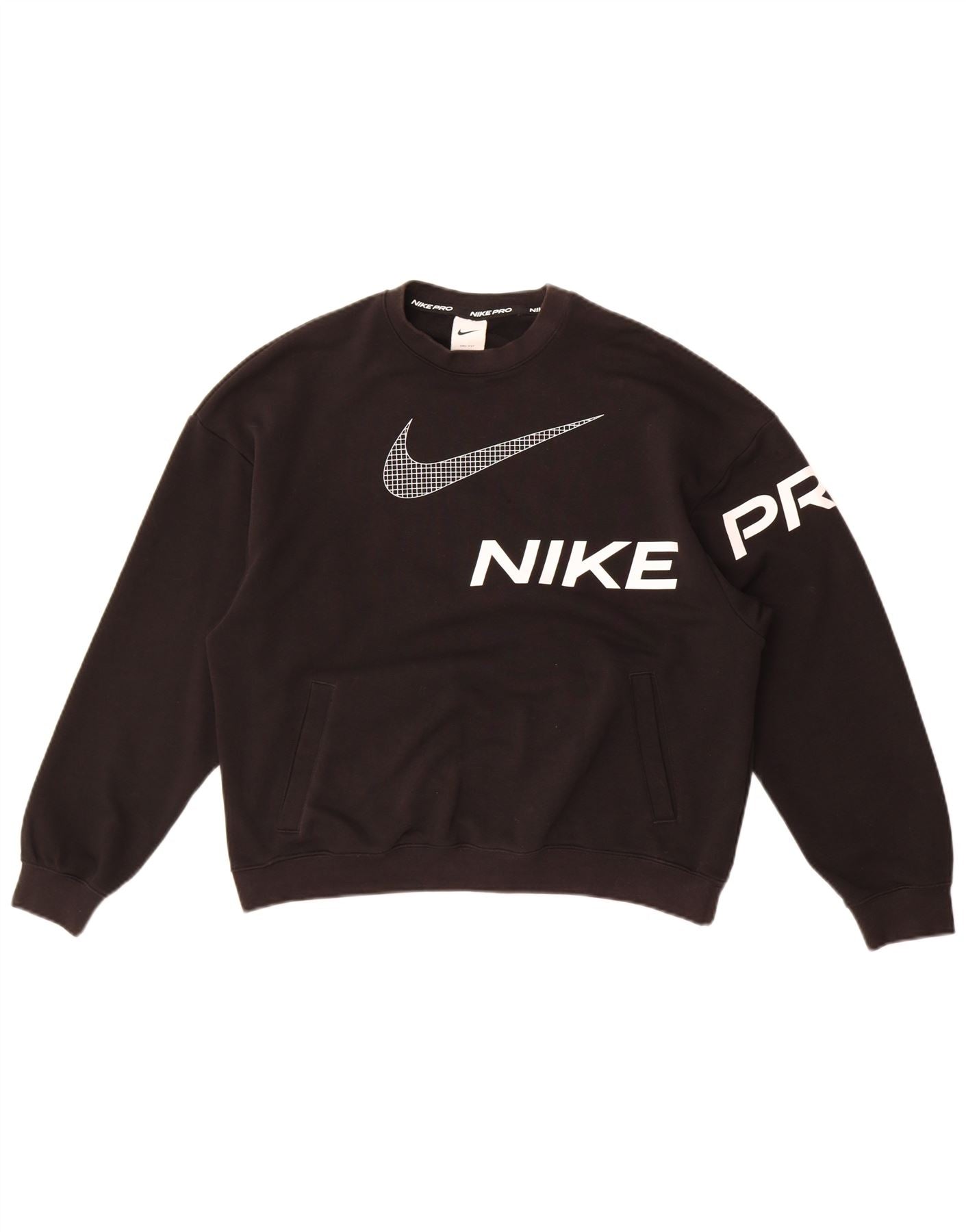 Pulover supradimensionat cu grafic Nike pentru femei UK 10 Bumbac negru mic