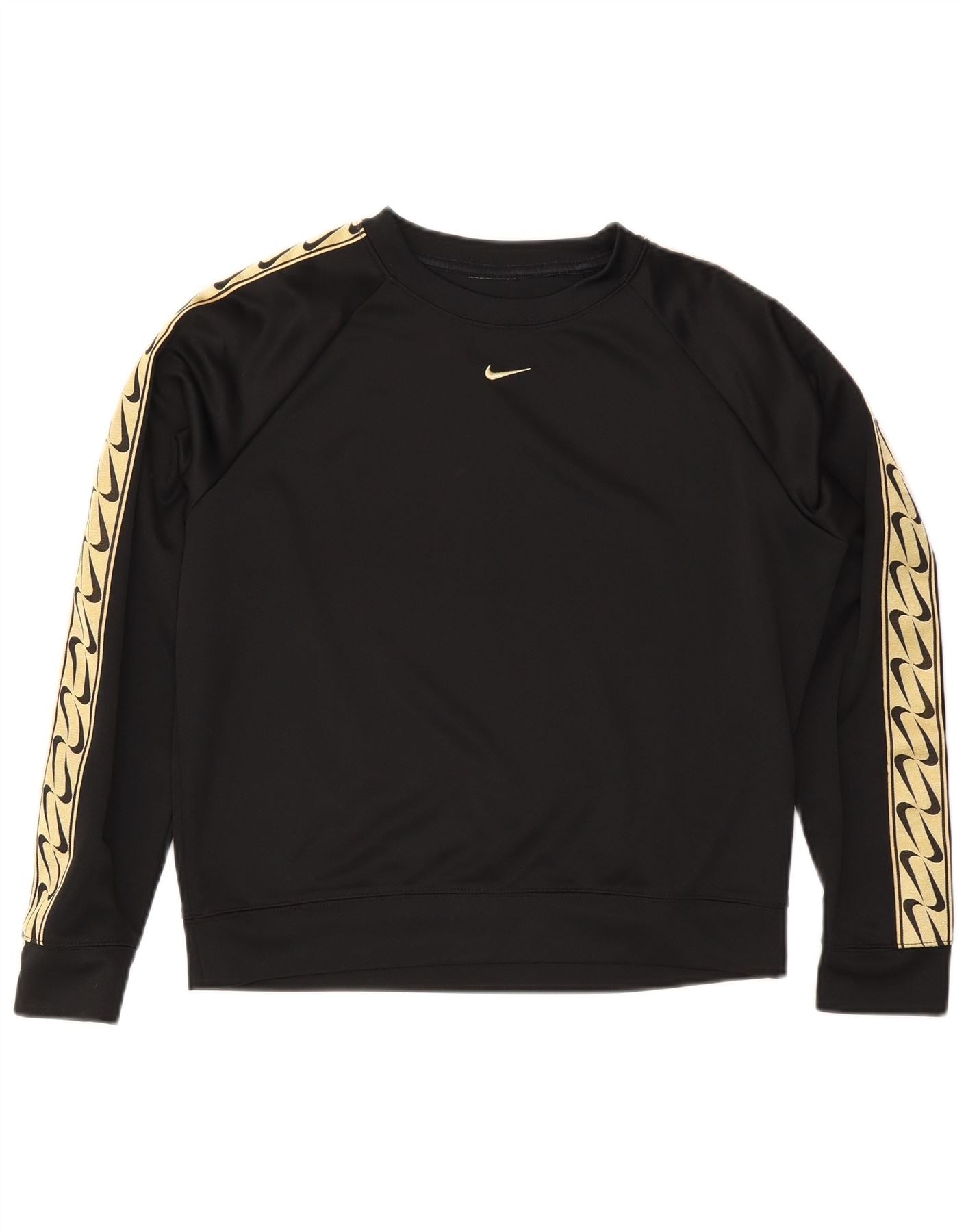 NIKE Womens Graphic Sweatshirt Jumper UK 12 Medium Black Colourblock