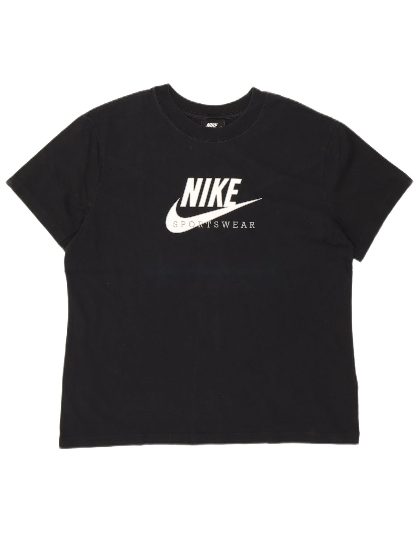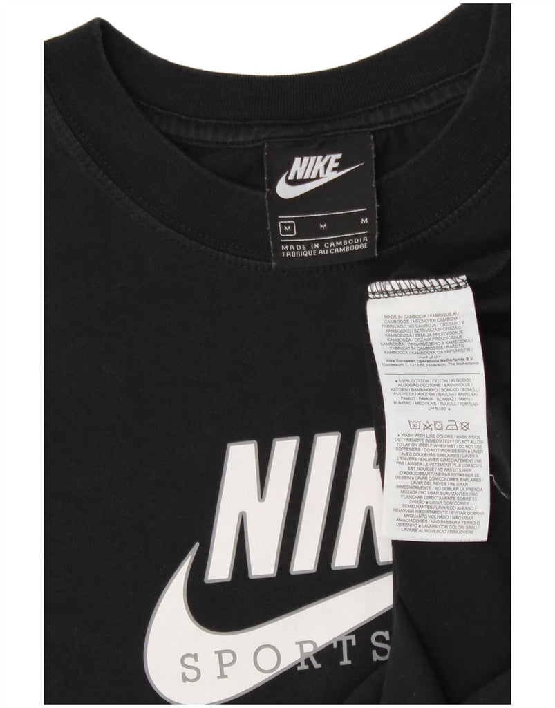 NIKE Womens Graphic T-Shirt Top UK 14 Medium Black Colourblock Cotton