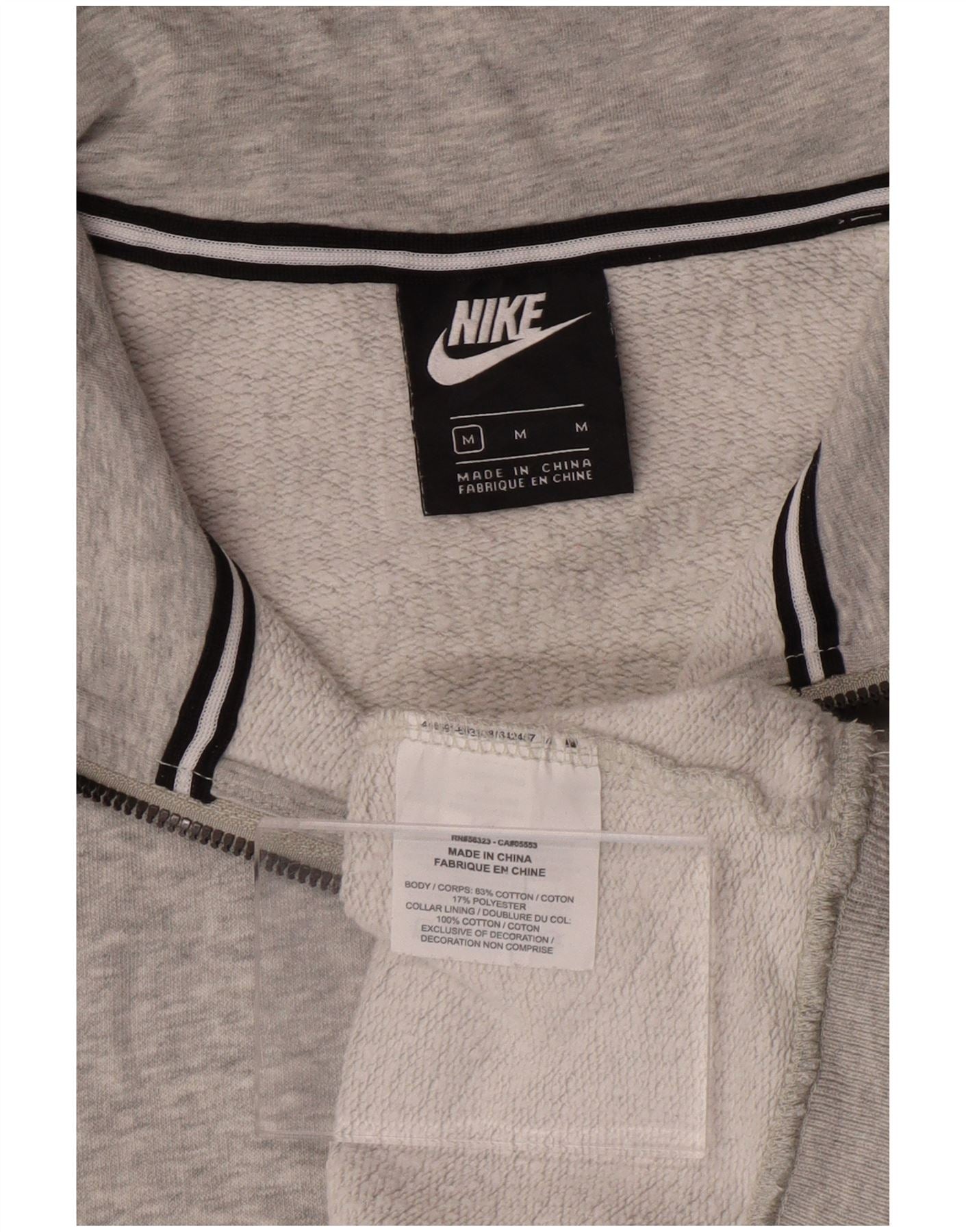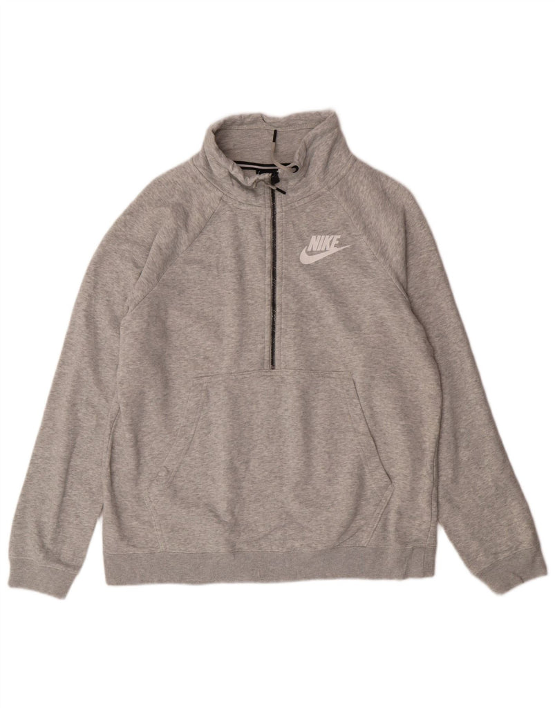 NIKE Womens Graphic Zip Neck Sweatshirt Jumper UK 14 Medium Grey Cotton