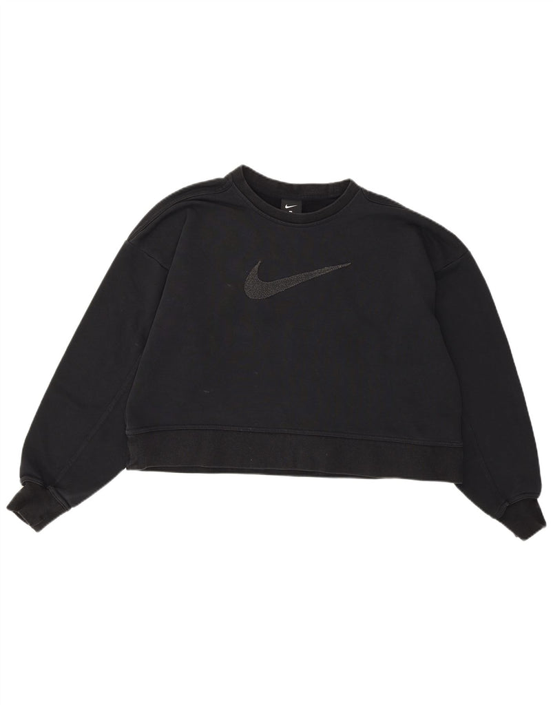 NIKE Womens Oversized Crop Graphic Sweatshirt Jumper UK 10 Small Black