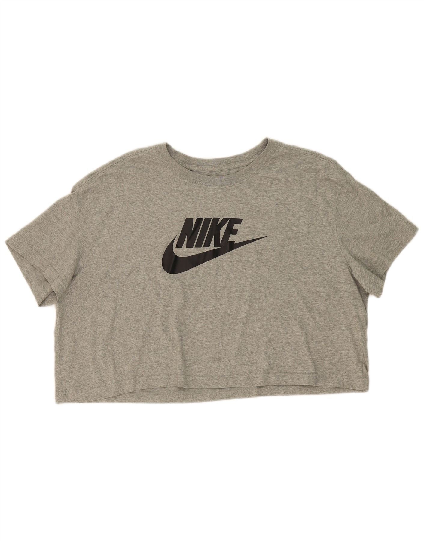 NIKE Womens Oversized Crop Graphic T-Shirt Top UK 18 XL Grey Cotton