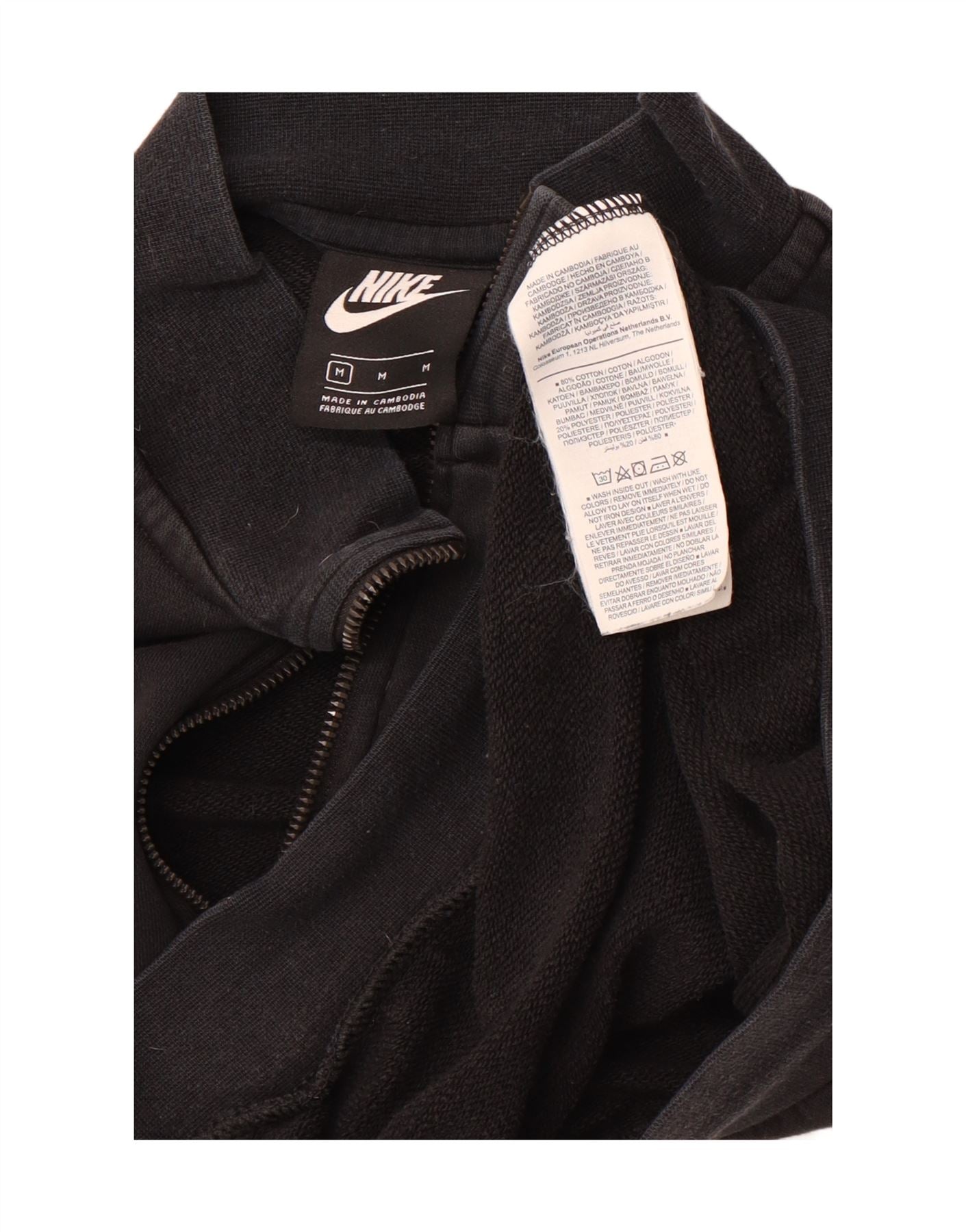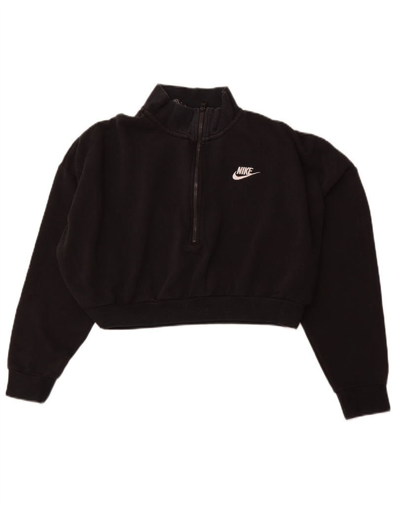 NIKE Womens Oversized Crop Zip Neck Sweatshirt Jumper UK 14 Medium Black