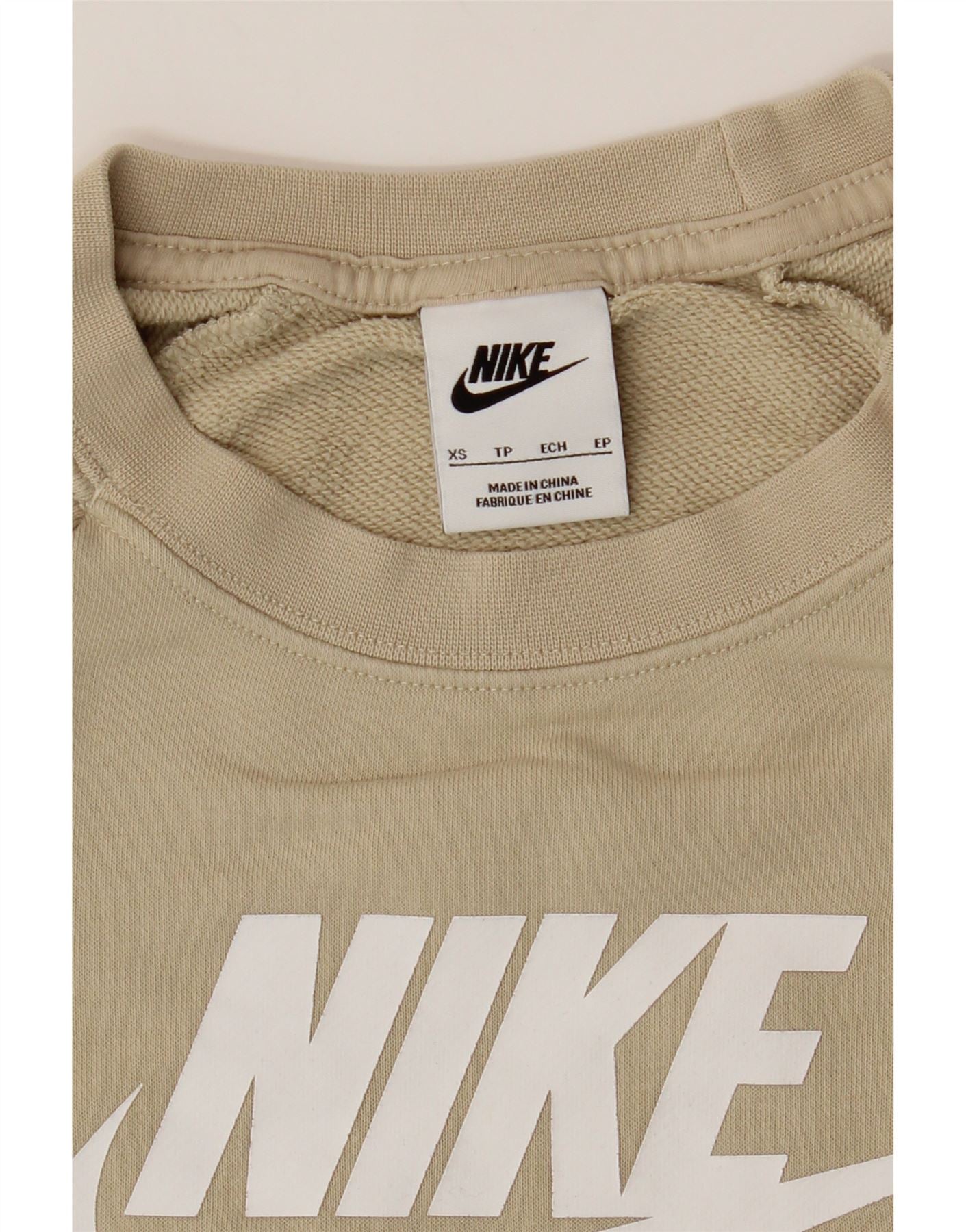 NIKE Womens Oversized Graphic Sweatshirt Jumper UK 6 XS Beige Cotton