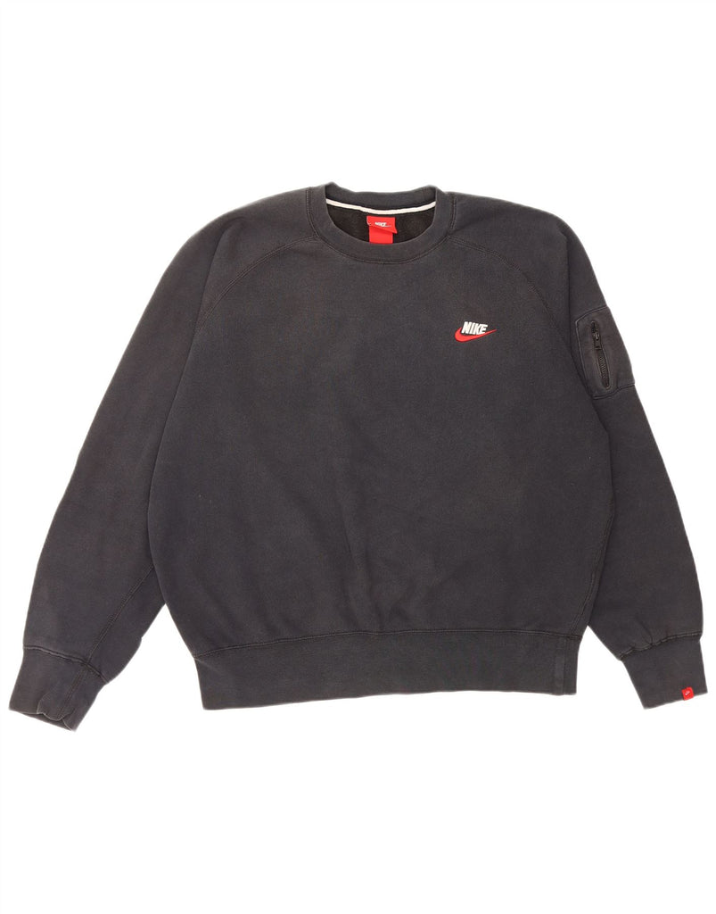NIKE Womens Oversized Sweatshirt Jumper UK 16 Large Navy Blue Cotton