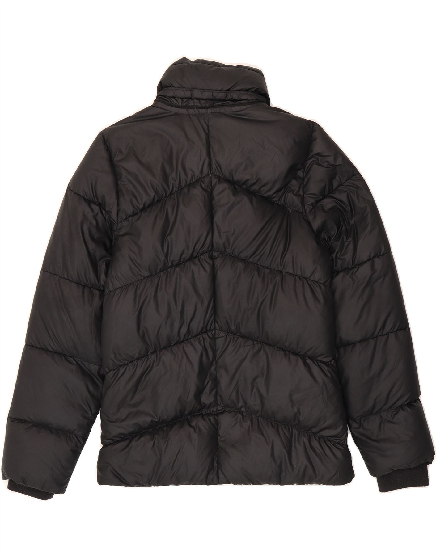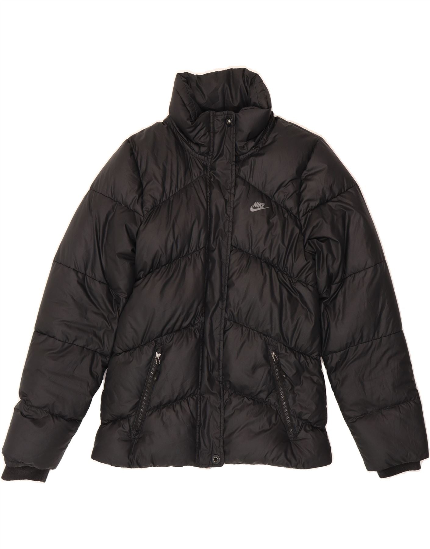 - AI Description: Stay warm in this pre-owned Nike padded jacket. Crafted from 100% polyester with a duck down filling, it offers excellent insulation. Features include long sleeves, a collared neckline, zipped pockets and a secure zip closure. The jacket is black with a logo accent and a regular fit, perfect for sports or casual wear. This item is in excellent condition.