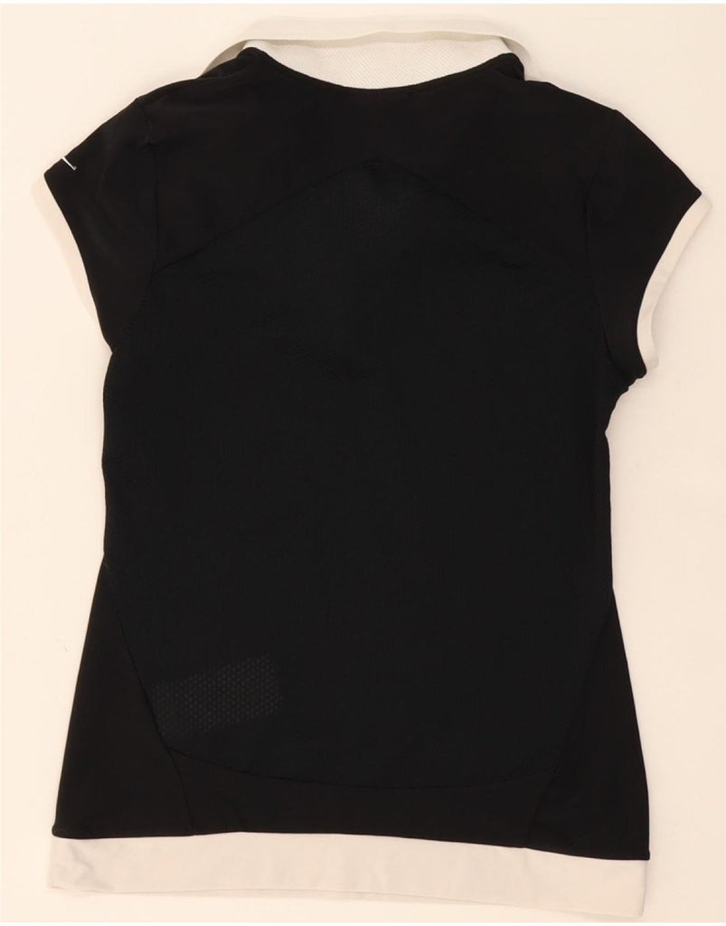 - AI Description: This Nike womens pullover shirt comes in a sleek black blended fabric. Its 88 percent polyester and 12 percent elastane composition provides breathable comfort and essential stretch. Featuring a collared neckline and short sleeves, it offers a classic, athletic aesthetic. The regular fit is designed for movement, complete with a subtle branded logo accent. This Fit Dry top is perfect for sports activities.