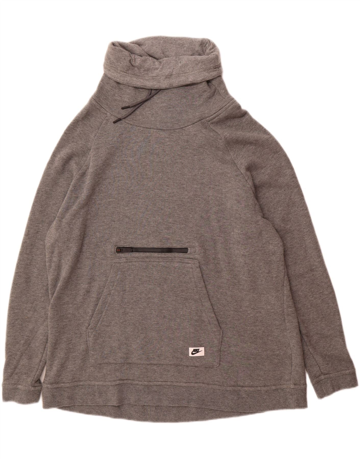 NIKE Womens Roll Neck Sweatshirt Jumper UK 16 Large Grey Polyester