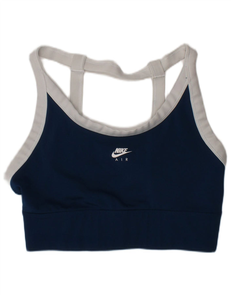 NIKE Womens Sport Bra Top UK 8 Small Navy Blue Colourblock Sports