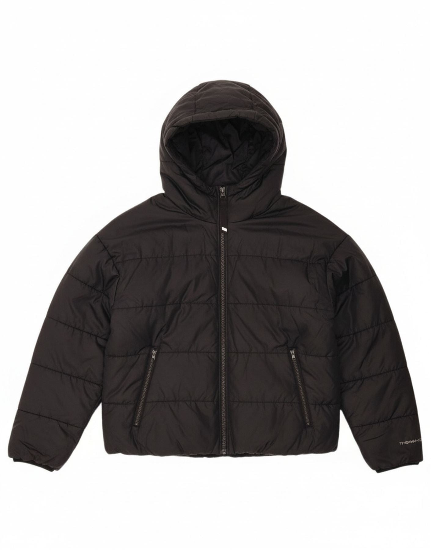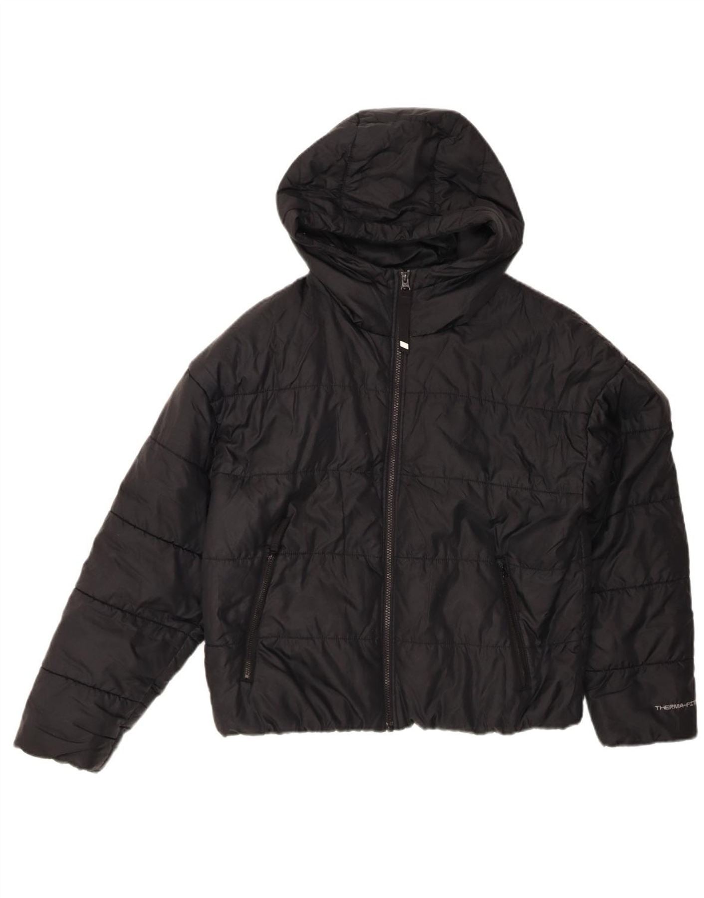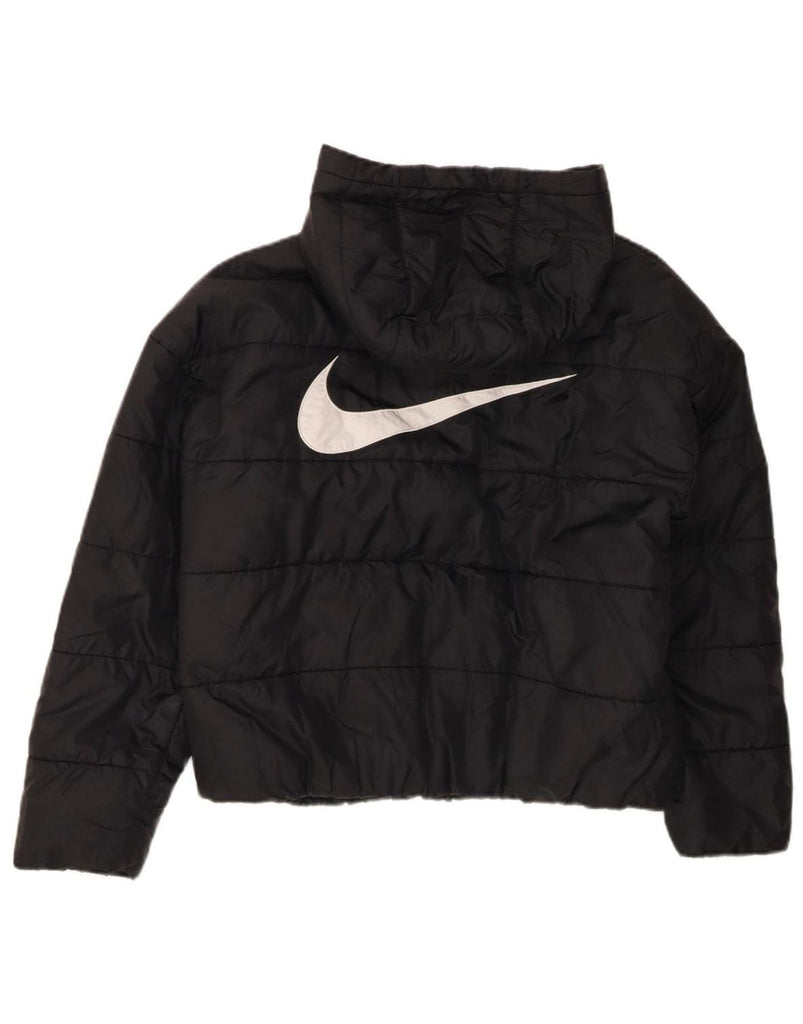 NIKE Womens Therma-Fit Graphic Hooded Padded Jacket UK 14 Medium Black