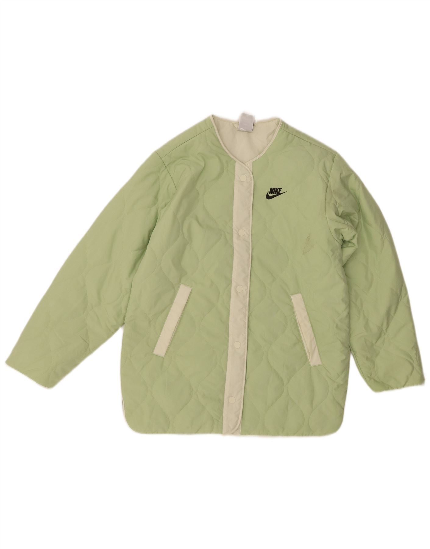 NIKE Womens Therma-Fit Oversized Quilted Jacket UK 6 XS Green Colourblock