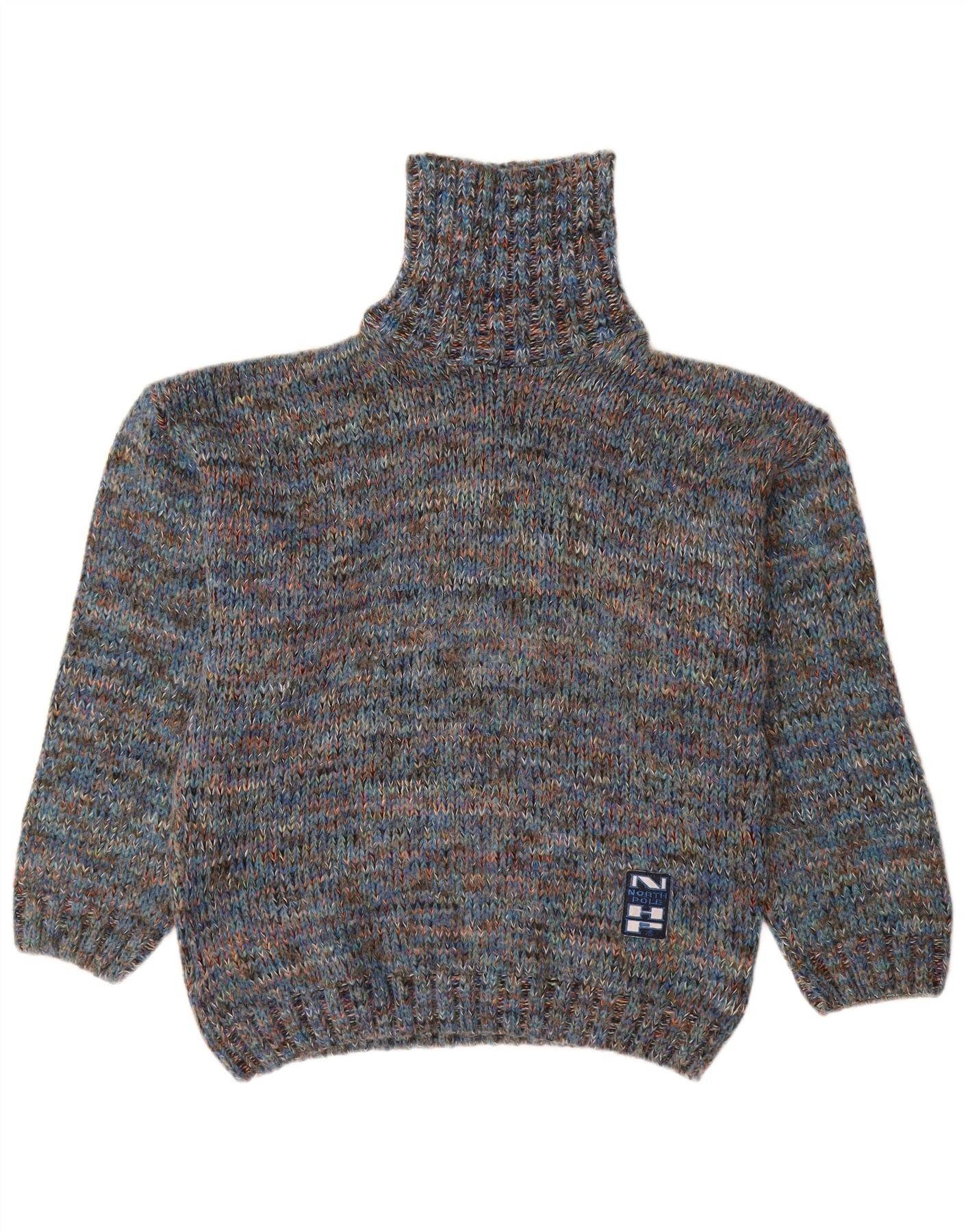 NORTH POLE Pulover cu gât rulat pentru bărbați, lână cu pete albastre medii