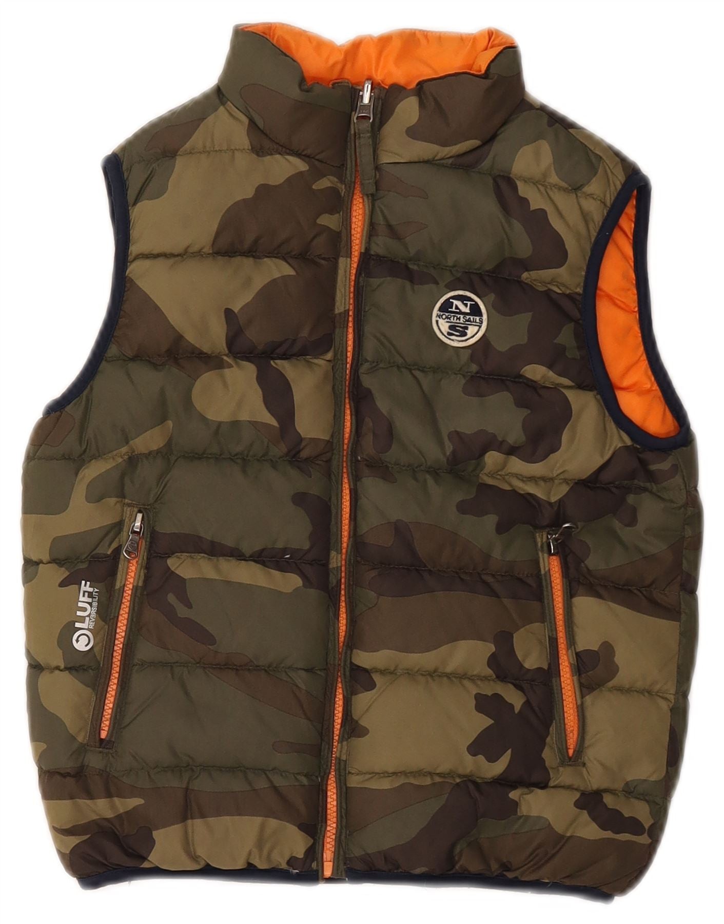 NORTH SAILS Boys Reversible Padded Gilet 5-6 Years Khaki Camouflage
