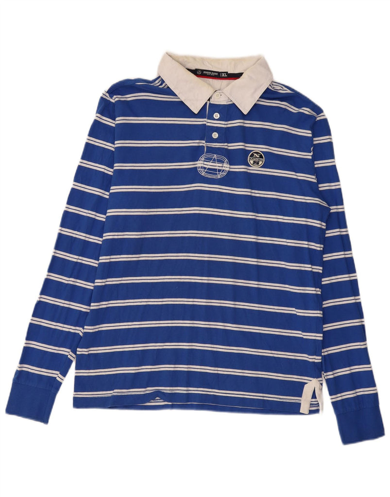 NORTH SAILS Tricou polo rugby cu mânecă lungă pentru bărbați XL, bumbac cu dungi albastre