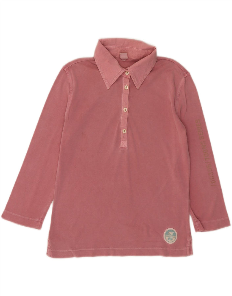 NORTH SAILS Womens Graphic 3/4 Sleeve Polo Shirt UK 10 Small Pink Cotton